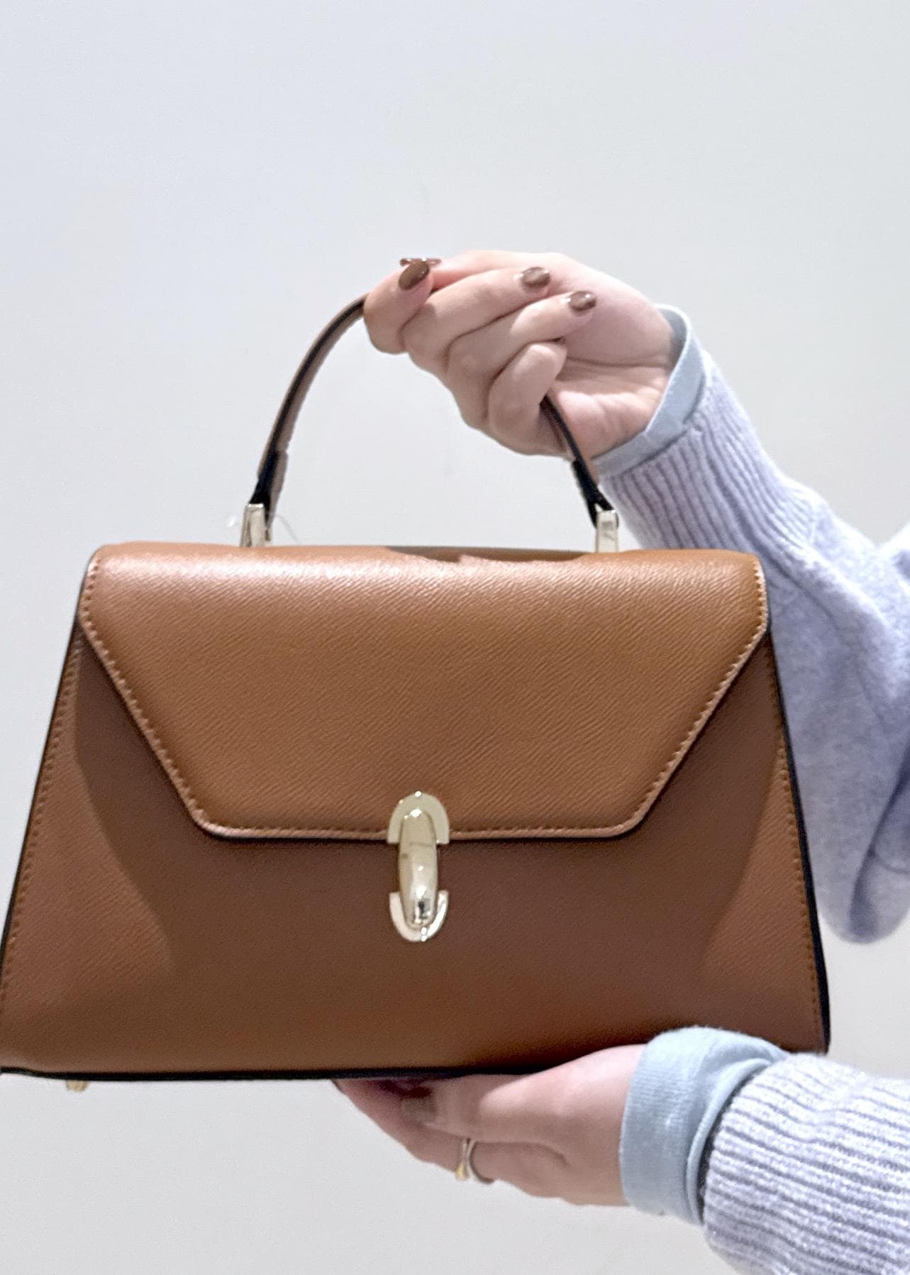 VIS楕円金具ワンハンドルバッグ/2WAYキャメル / F¥7,909レビュー大会型のワンハンドルバックで、見た目が上品らしさもあり高見えすることもあって実際に私もリアルバイしてしまいました♡ショルダーバッグの紐が入っているので2wayで使うことができ、気分に合わせてどちらでも使用可能◎コンパクトなサイズ感で意外とマチも広めなので容量も入ります。中には財布や携帯、ミニポーチなど必要最低限の物は入るのでオススメです!