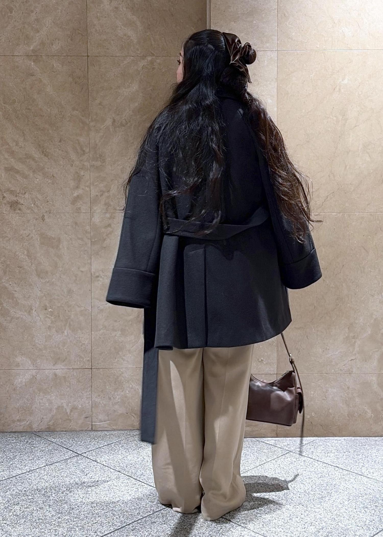 VIS【アウター総選挙2位】フレアーチェスターコートブラック / F¥14,080レビュー前を閉めても可愛いのですが、コートのヒラっと感がとても良くて、たくさん動いてしまって紐がブレちゃったりしました、、、失礼しました。。。