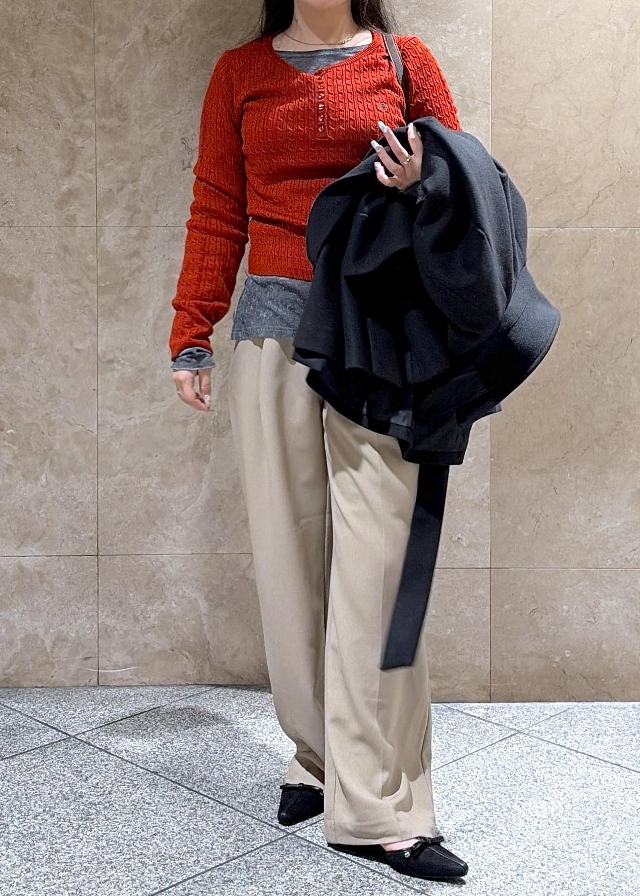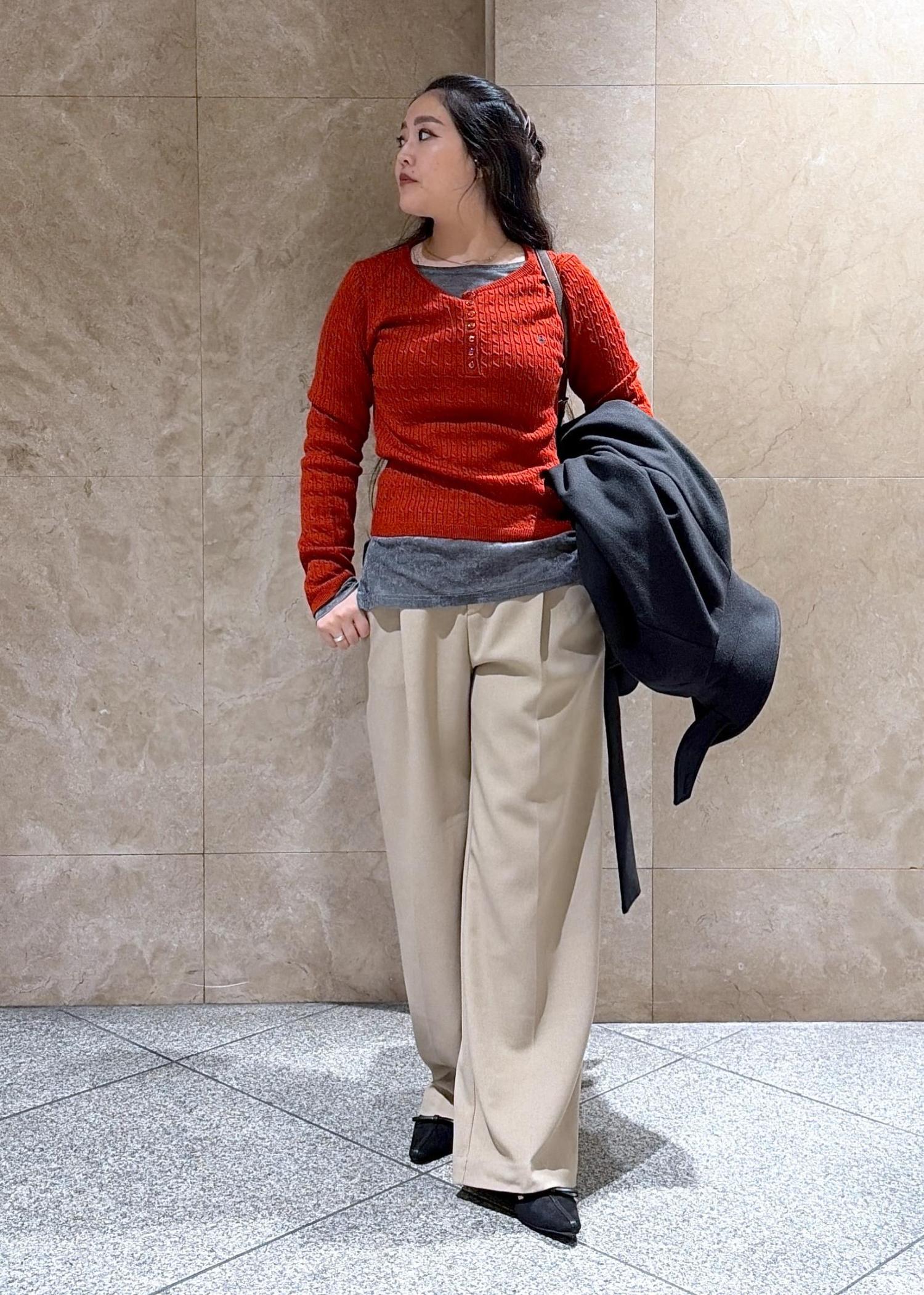 VIS【POLO BCS】VIS別注ヘンリーネックミニケーブルニットトップスレッド系 / F¥6,600レビューヘンリーネックで、ボタンを2個ほど開けて使うのもとても可愛いです◎