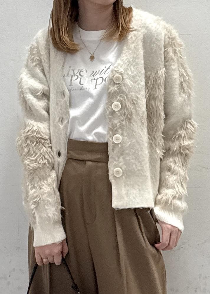 VISアート柄ジャガード起毛ニットカーディガン/イージーケアオフホワイト / F¥7,689レビュー158cmで腰より少し長めの丈感でした。