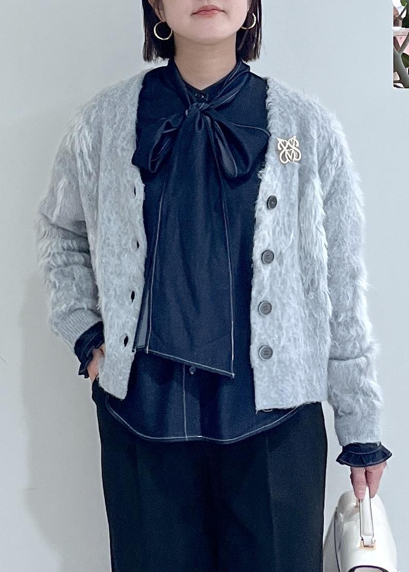 ボタンを閉じてきても良いですし、開けてインナーを合わせていただいても可愛くコーディネート出来ます。