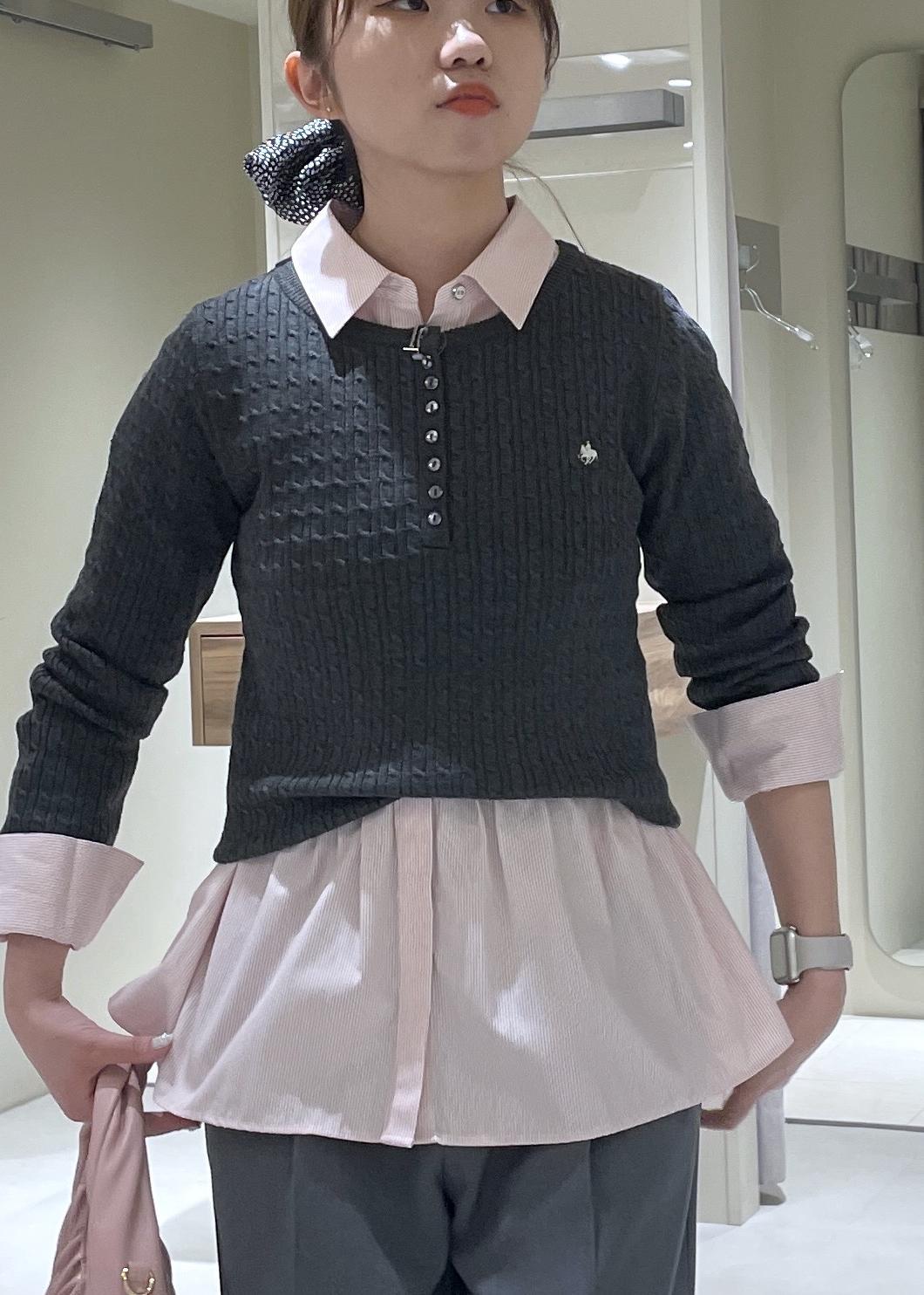 VIS【POLO BCS】VIS別注ヘンリーネックミニケーブルニットトップスチャコール / F¥6,600レビューPOLO BCS第4弾