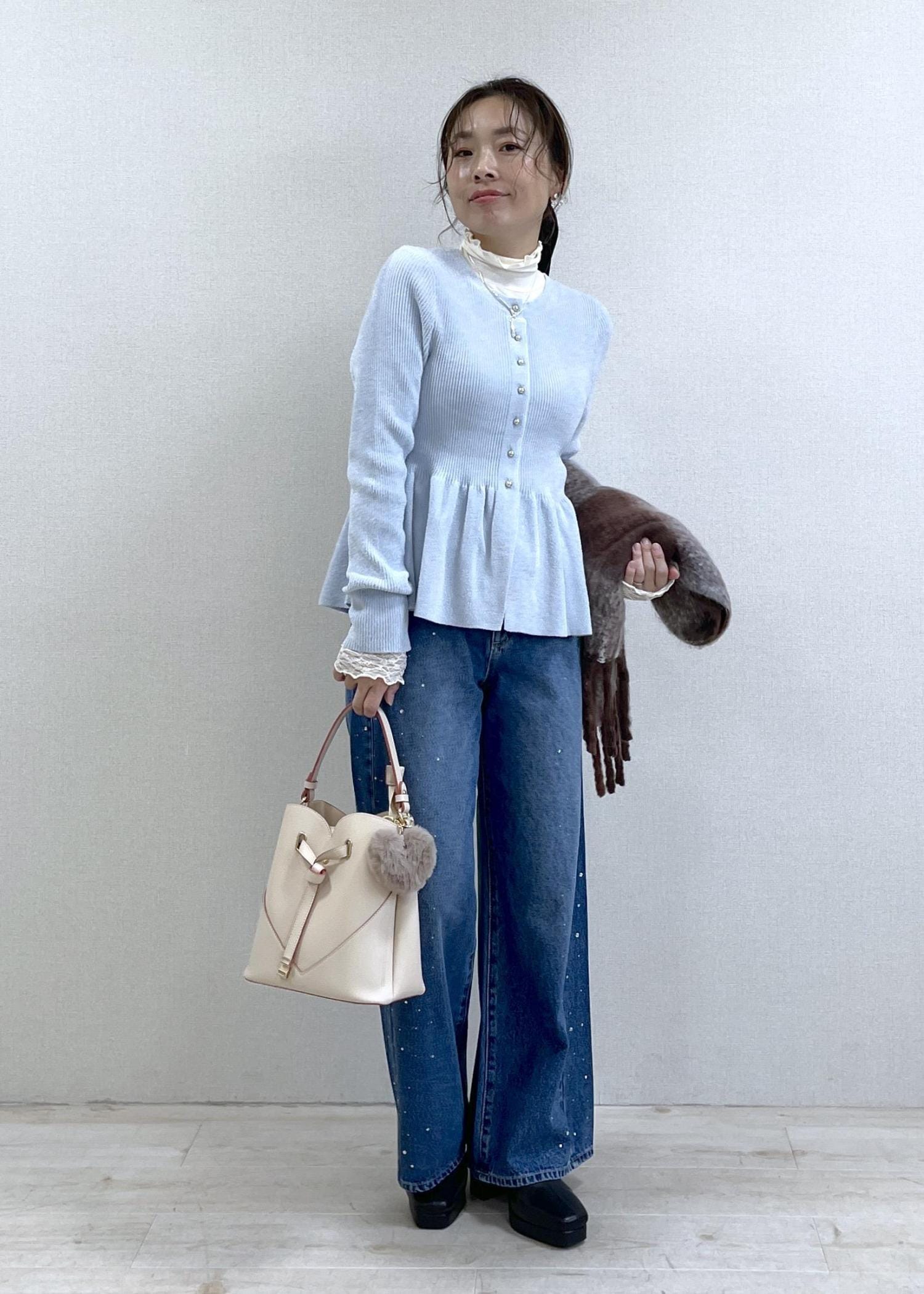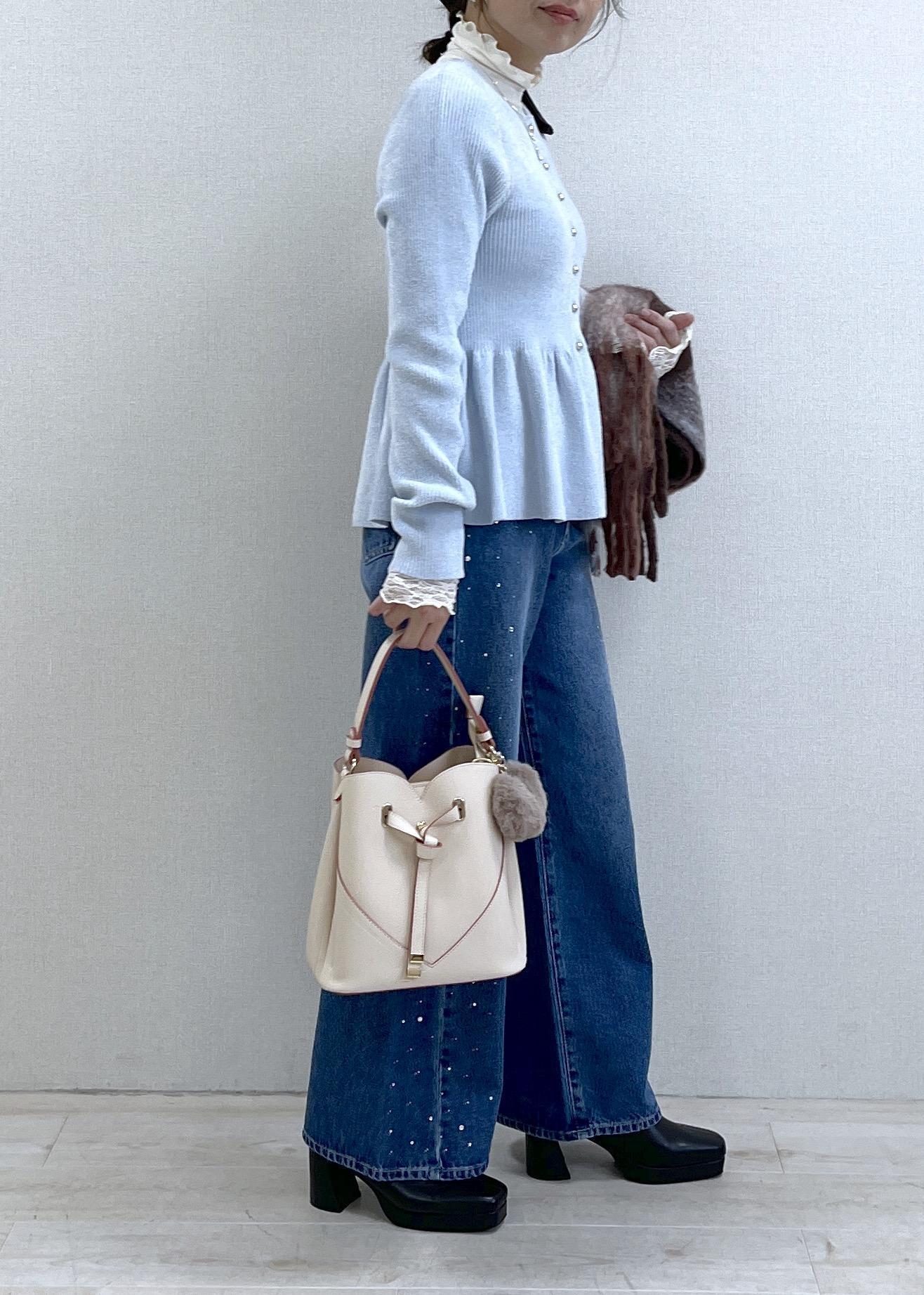 ふんわりした水色が冬コーデに柔らかさをプラスしてくれます。