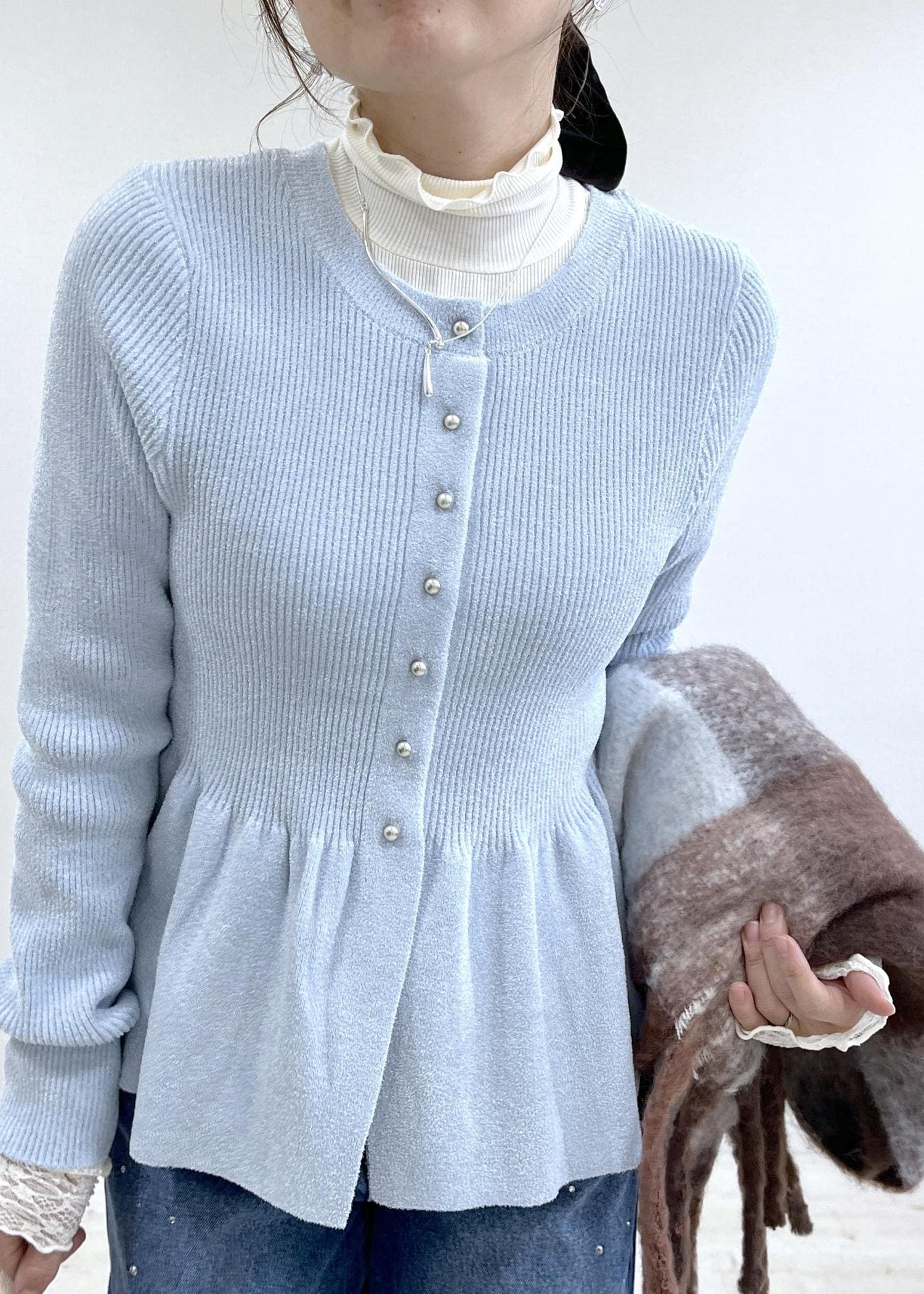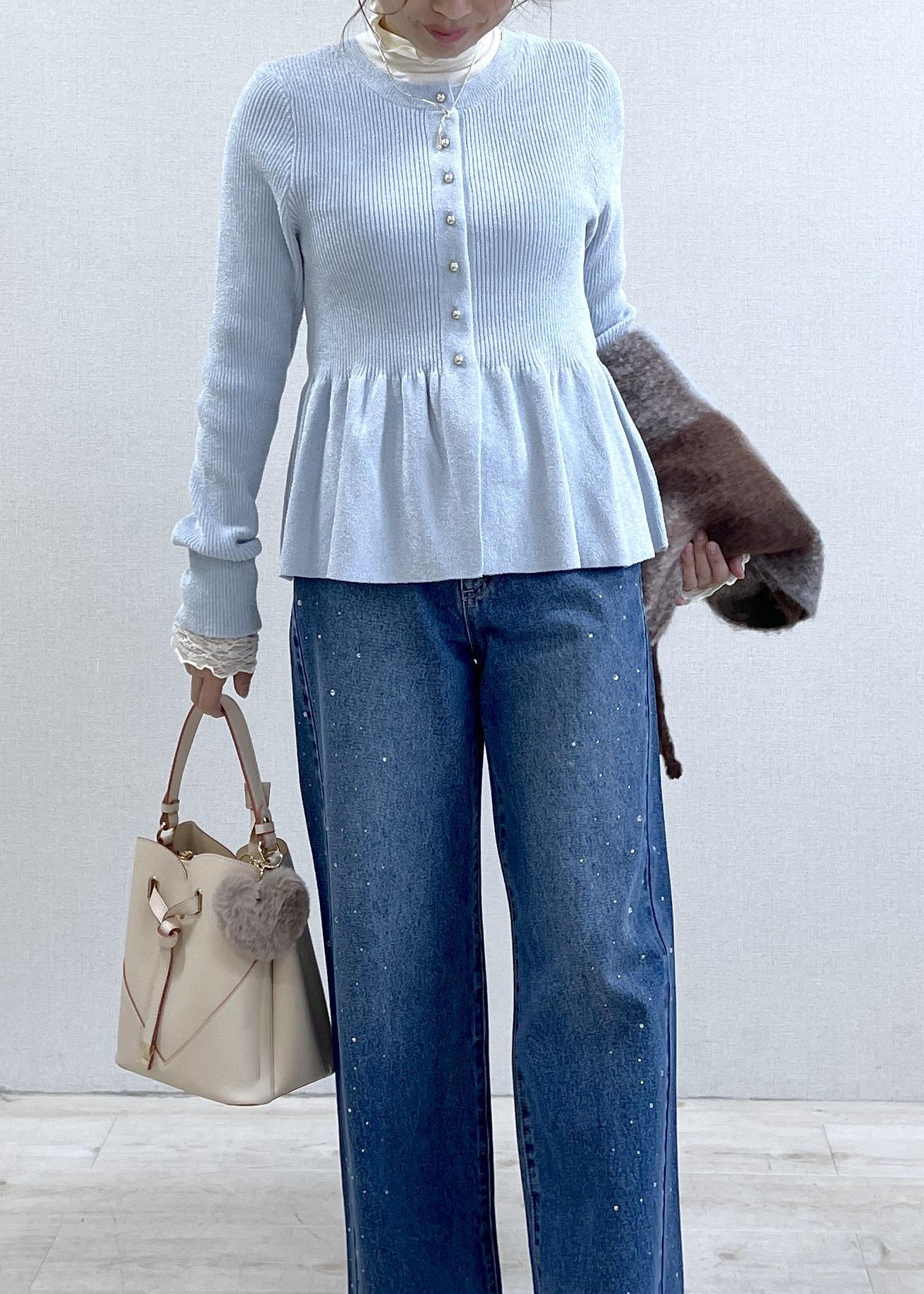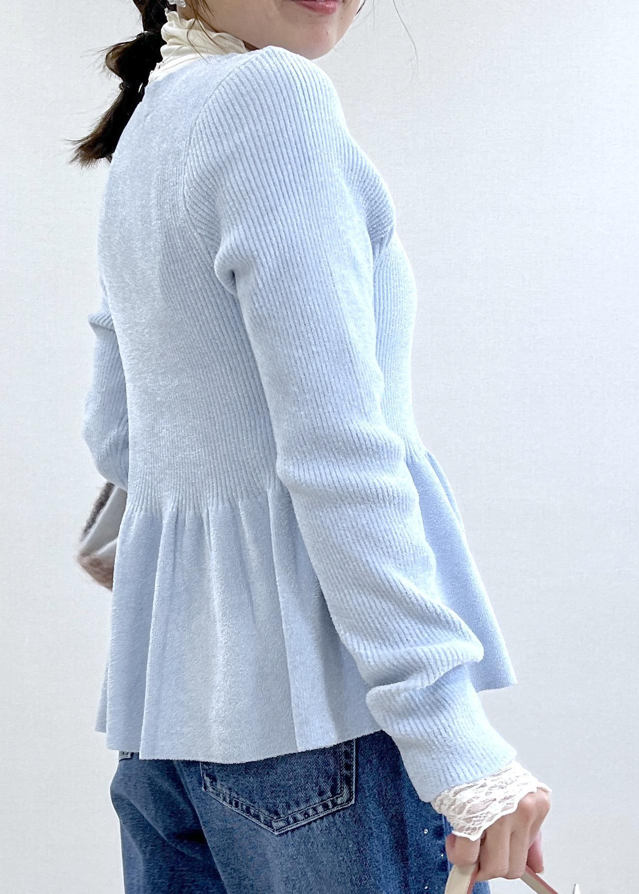 ペプラムシルエットがさりげなくウエストを細く見せてくれるニットカーデ。