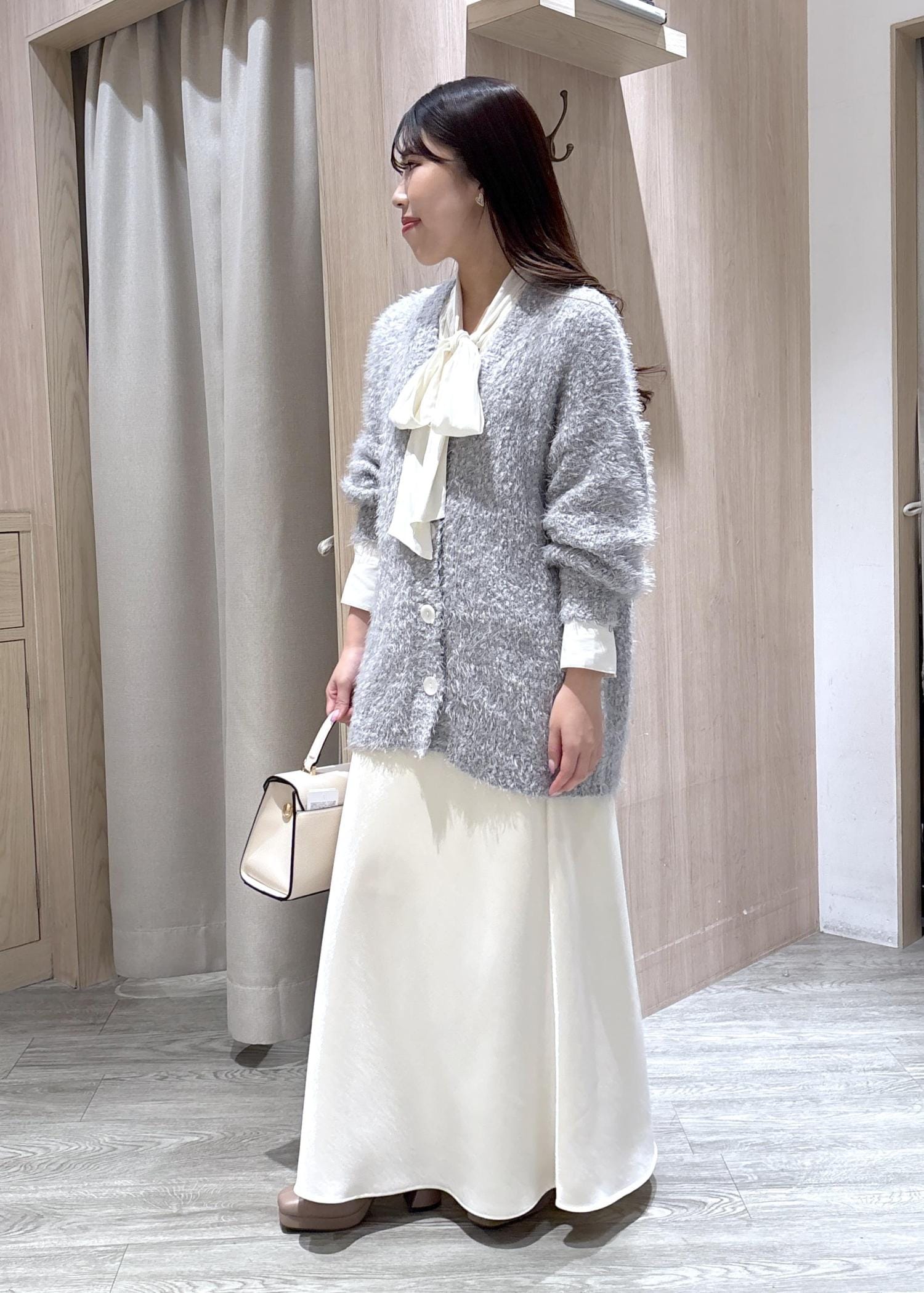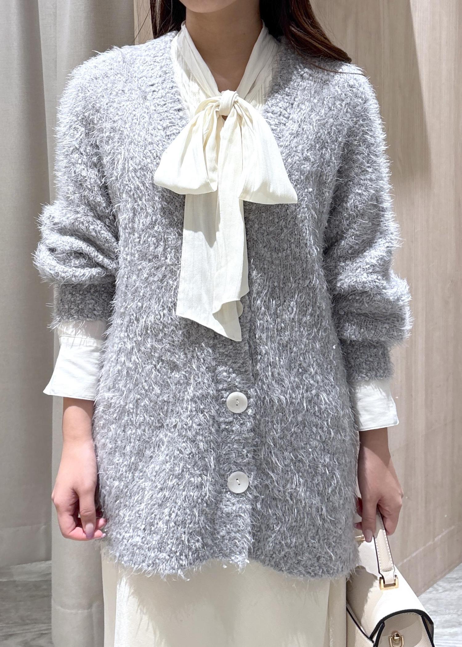 VISポップコーンヤーンラメフェザーニットカーディガン/WEB限定FSサイズライトグレー / F¥5,271レビューお尻が隠れるくらいの丈感で袖にボリュームがありますが、全体的落ち感があるデザインなので着膨れせず着やすくなっています。
