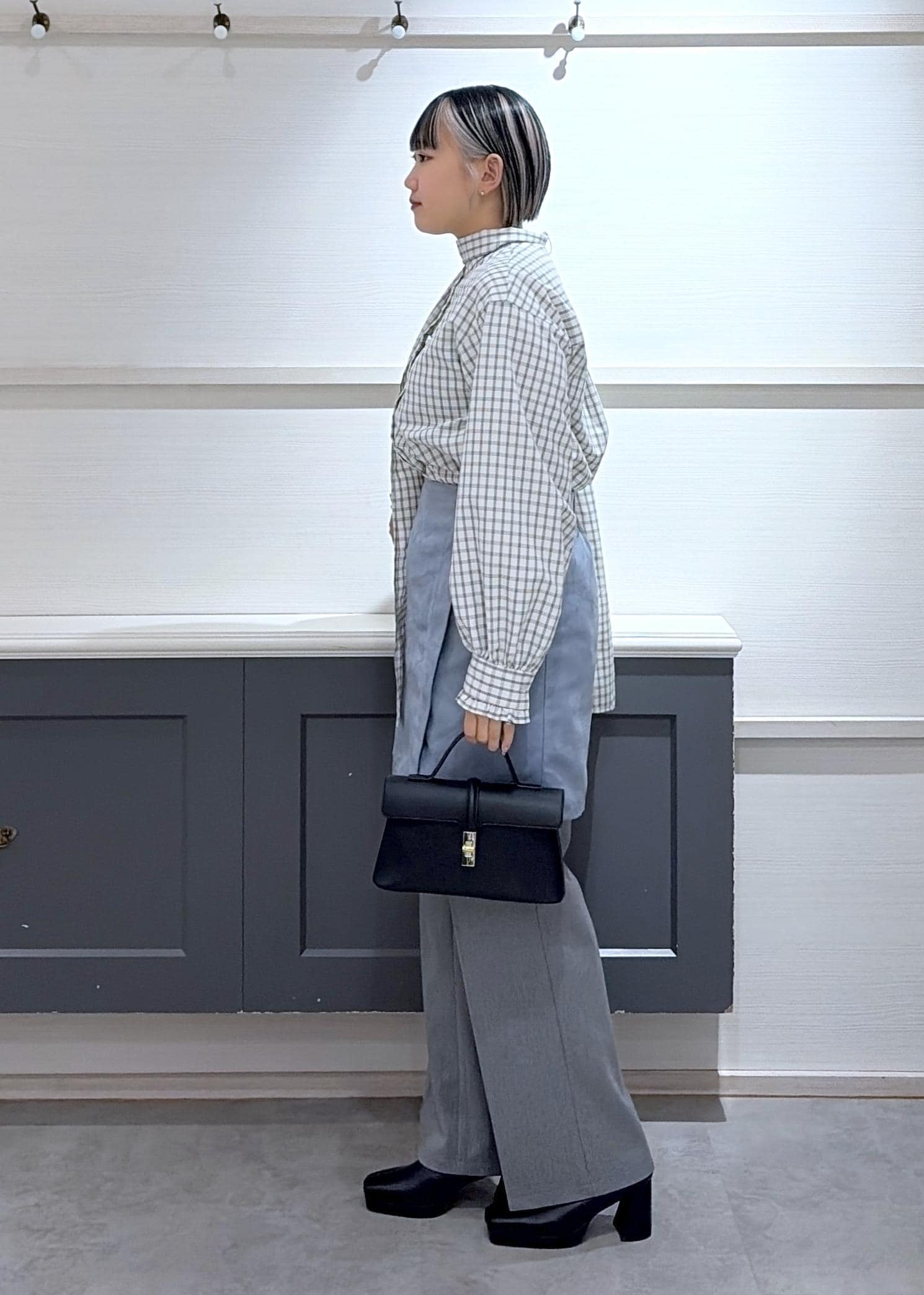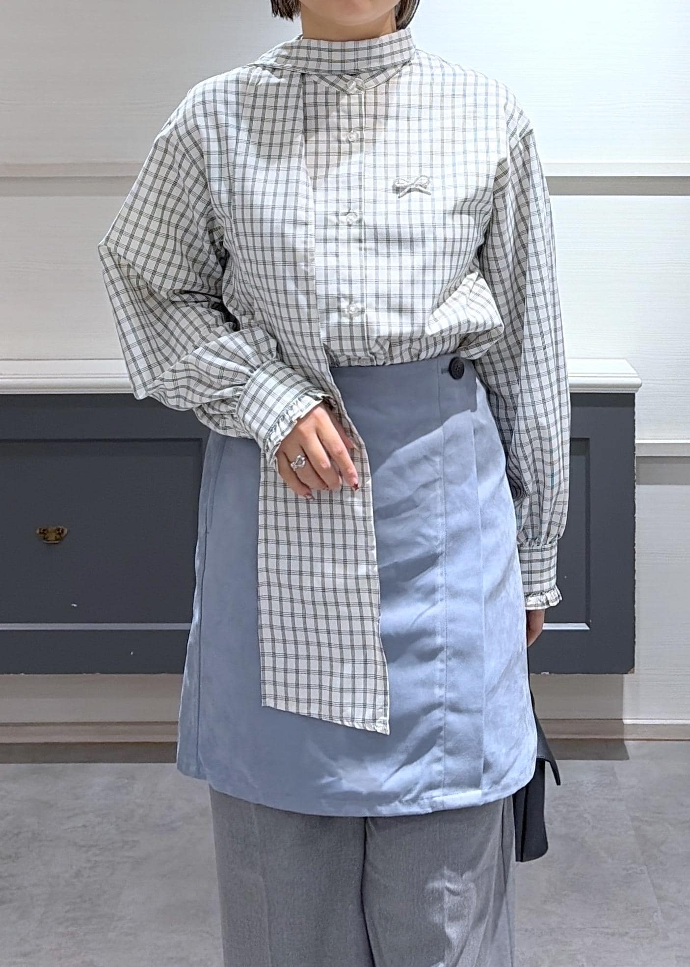 VISチェック&デニムアソートボウタイリボン付きスタンドカラーシャツオフホワイト / F¥6,589レビューおしりくらい丈はありました!