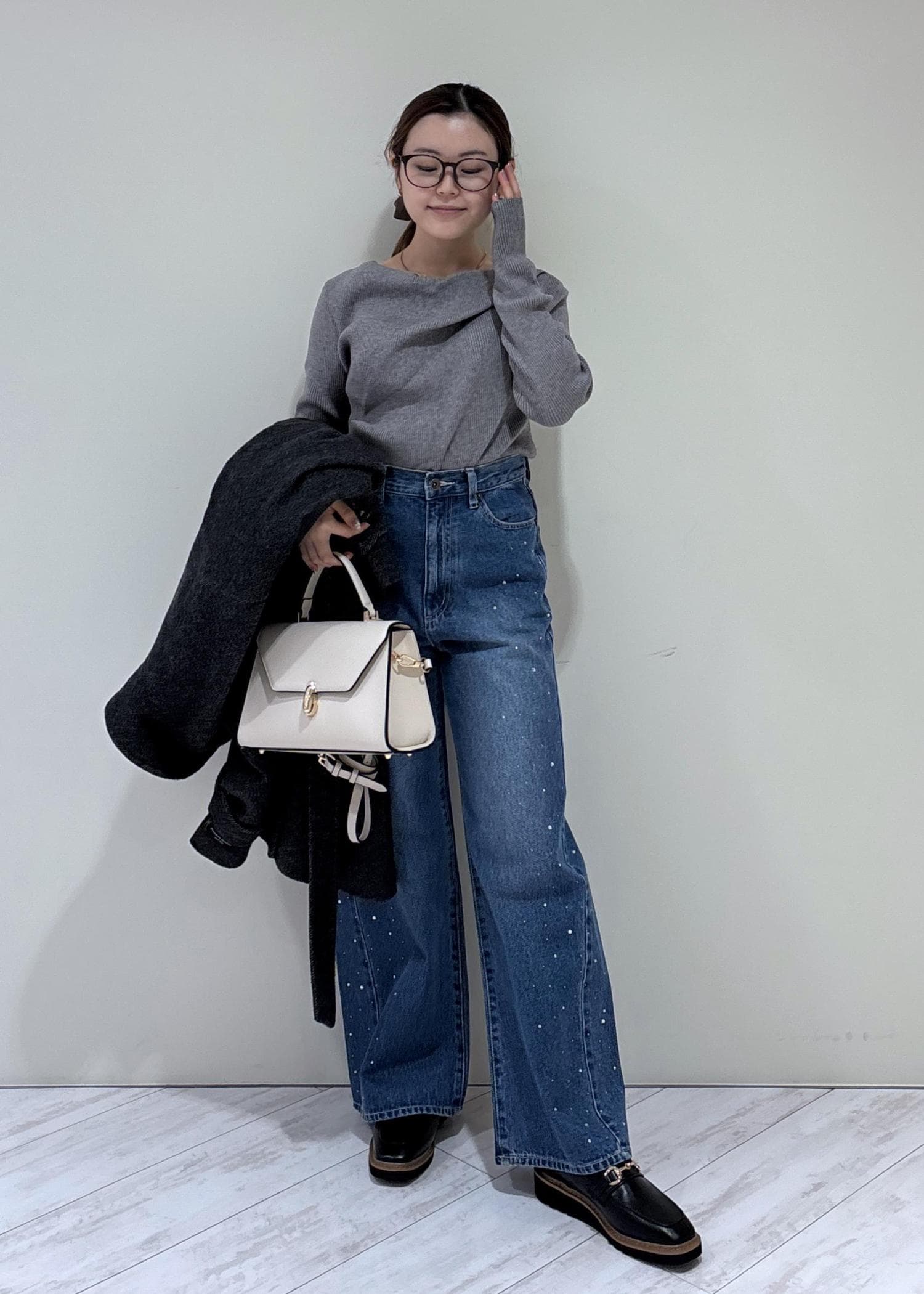 ウエスト部分1折りしたり、ヒールや厚みのあるシューズ合わせをするとバランスよく着用できます◎