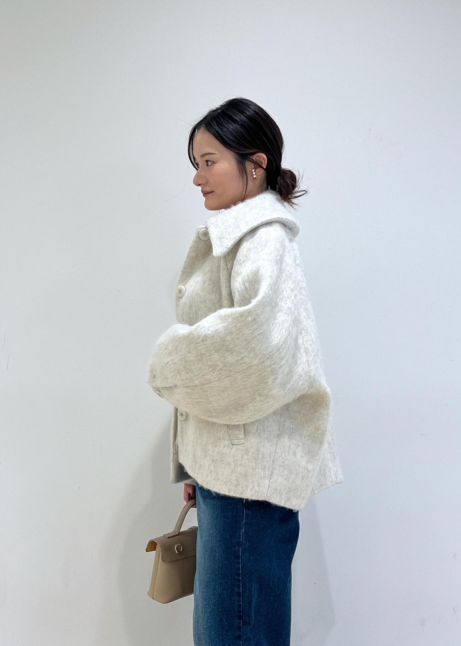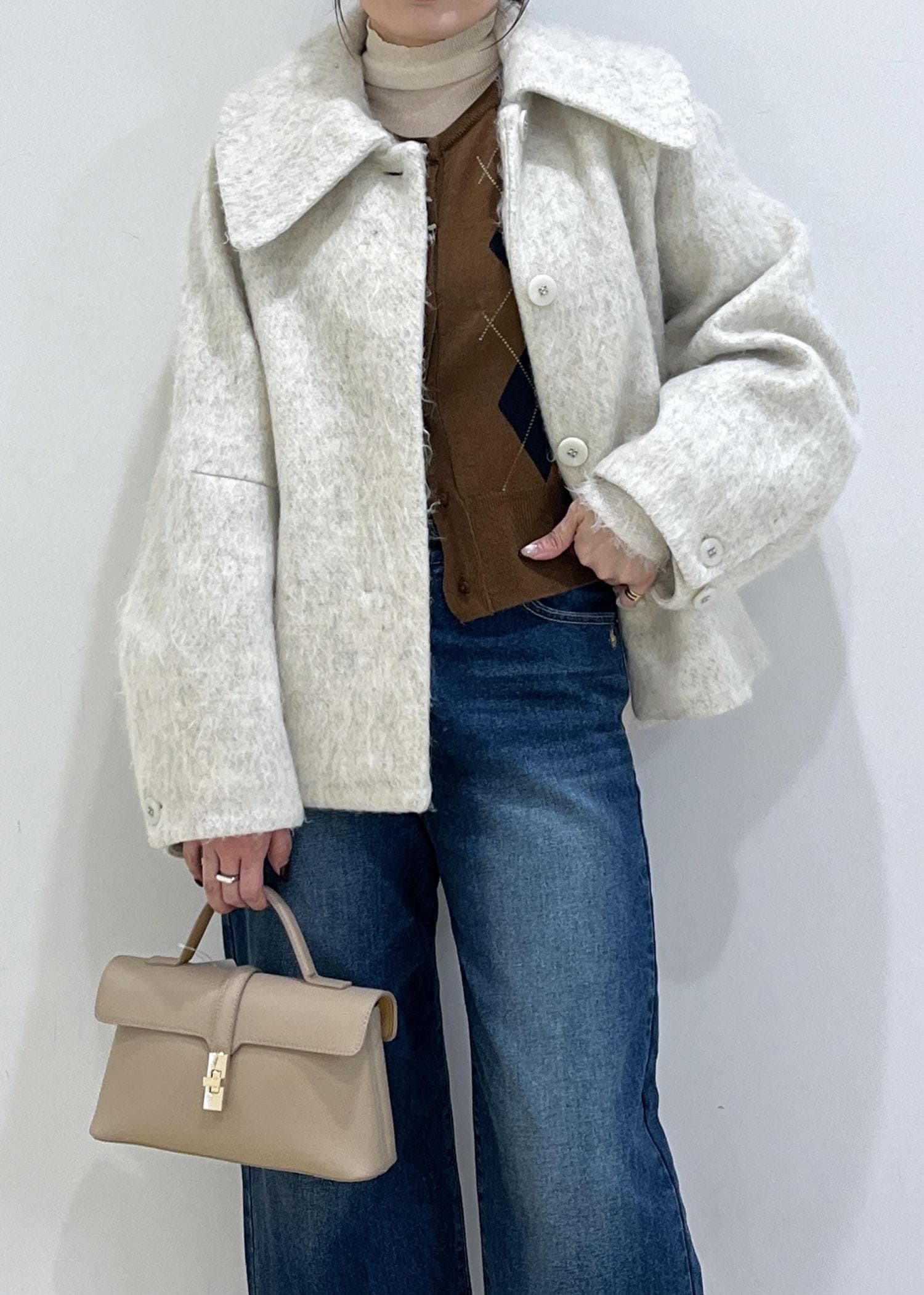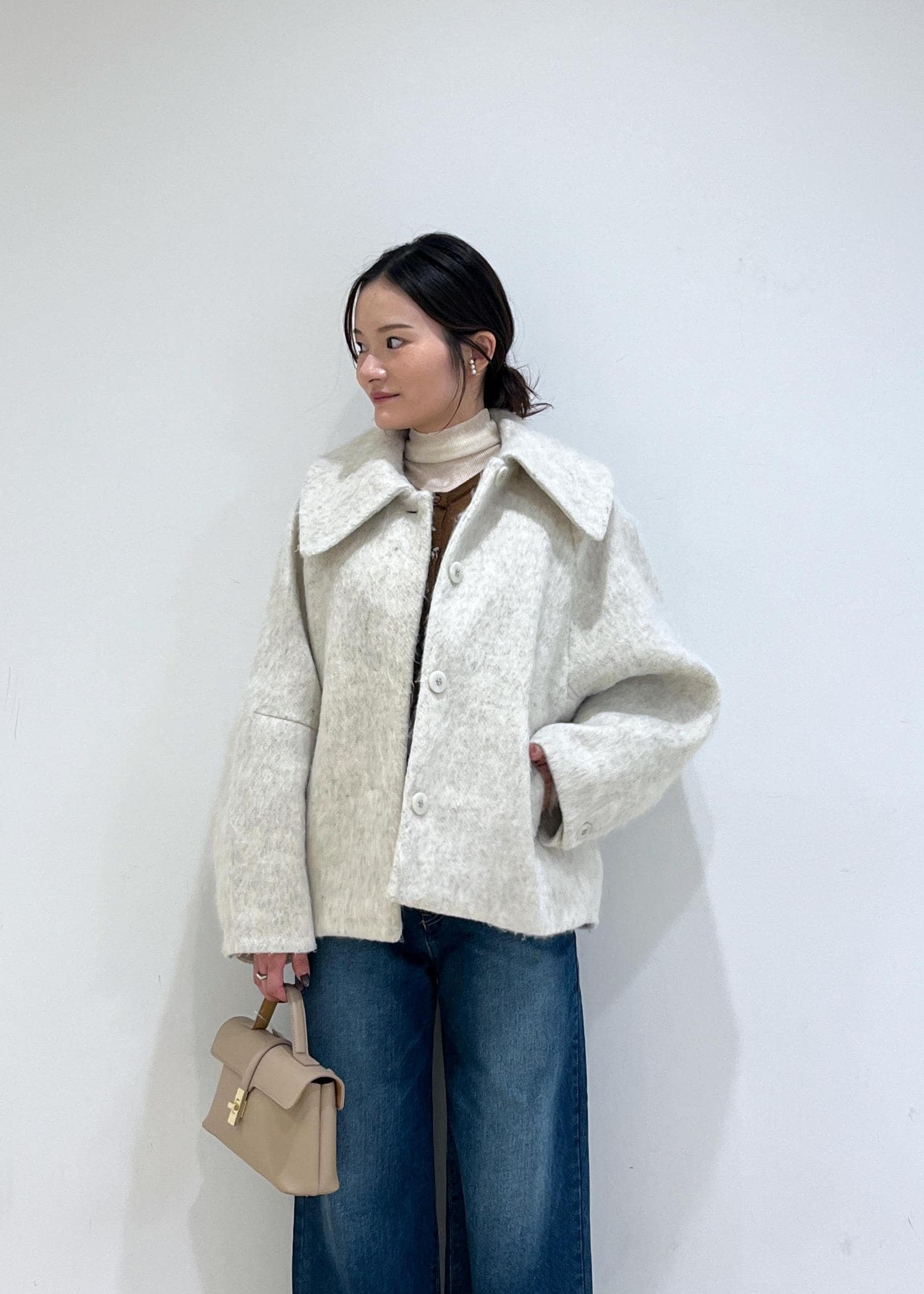 大きめな襟が小顔効果をもたらしてくれるのが◎ -