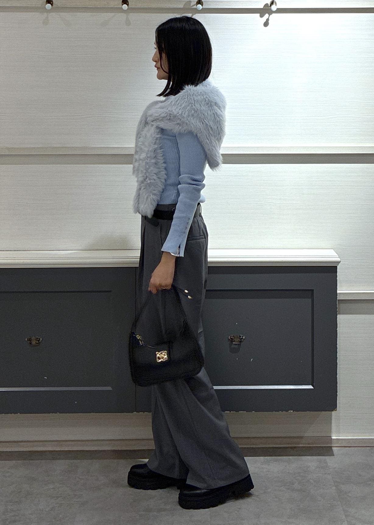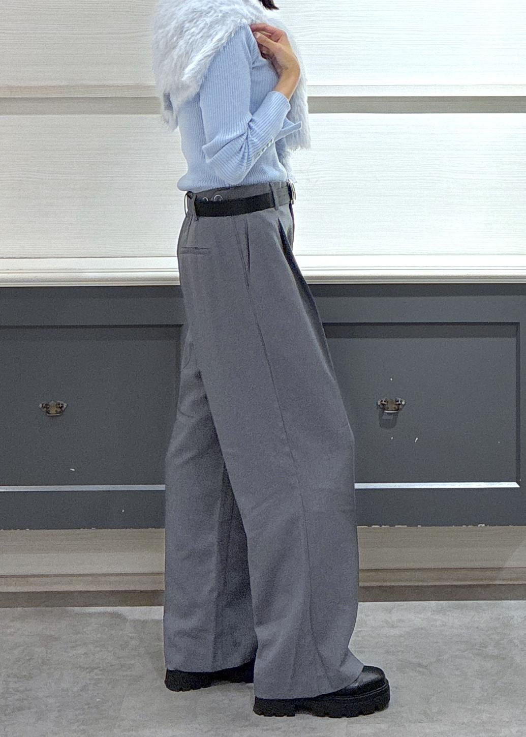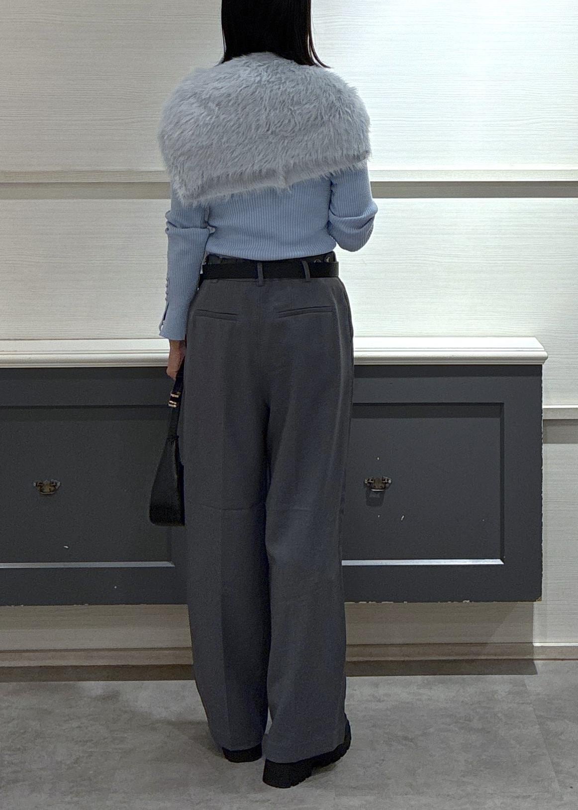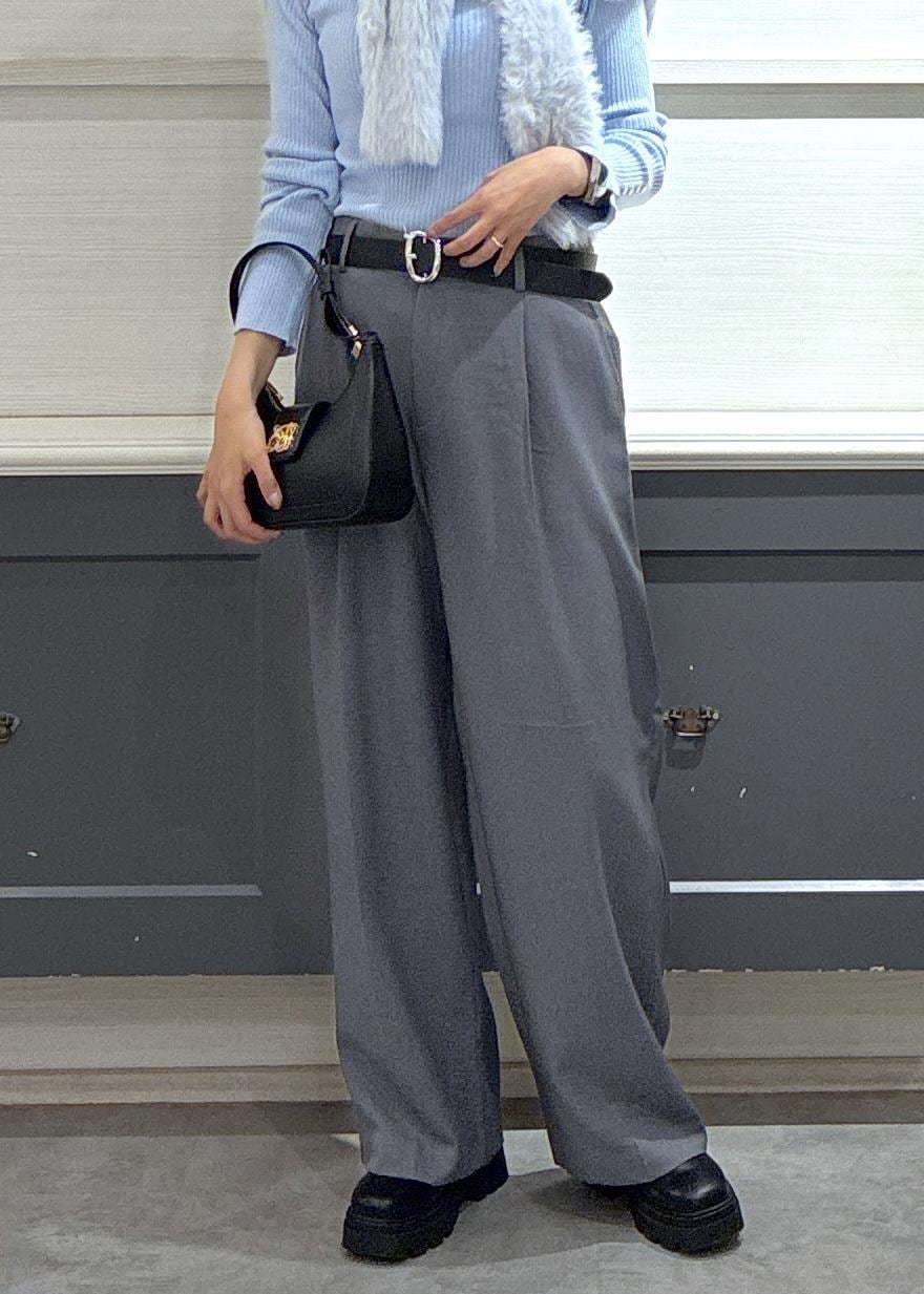 ワイドパンツの形を活かすためにトップスはピッタリめを選びスッキリさせました♩