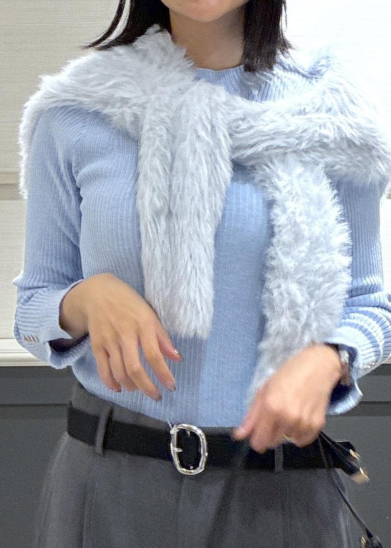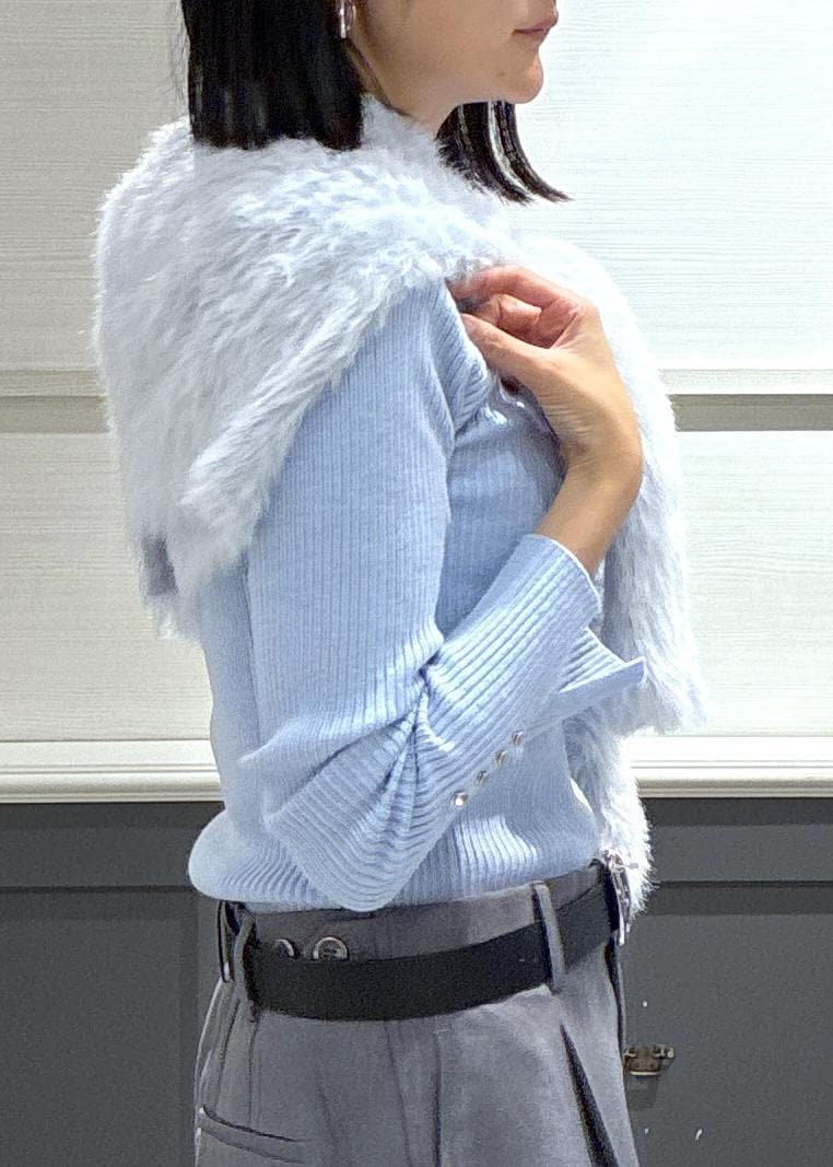 VISスリーブ釦アクセントリブニット/WEB限定FSサイズ・静電気防止サックス / F¥4,389レビュー骨格ストレートですが肩周りはスッキリしており、生地は柔らかく身体にフィットしますがチクチクせず快適に着用出来ました♡