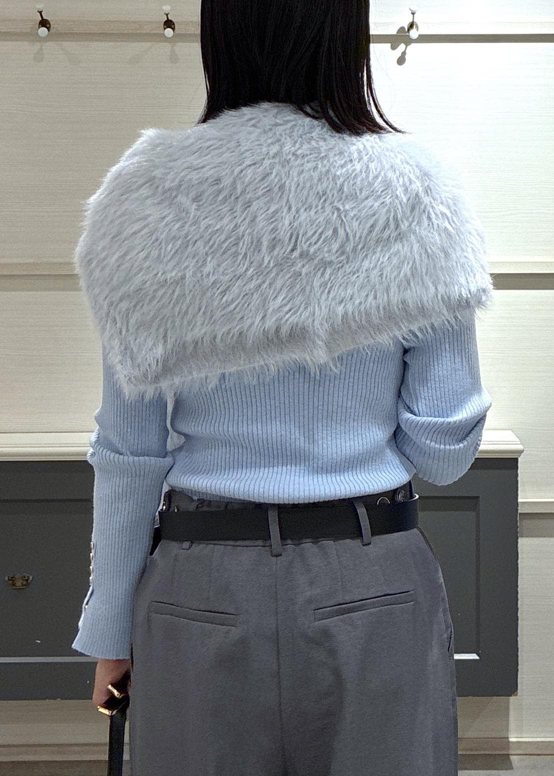 VISラビットファーVネックカーディガン/イージーケア・WEB限定カラーサックス / F¥5,929レビュー身長168センチでおへそより上の短丈です♪