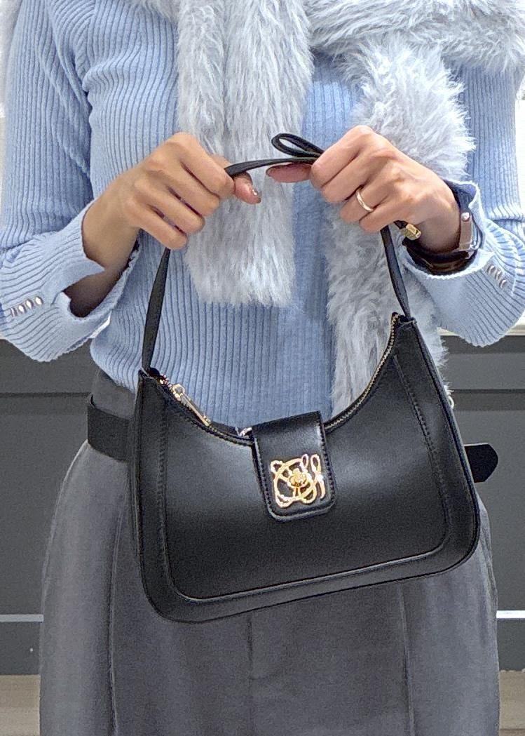 VIS【180℃美人見え】ハンドルリボンワンショルダーバッグブラック / F¥5,929レビュースマホや長財布、コスメもバッチリ入るので収納性抜群です!1日のお出かけにピッタリです♡