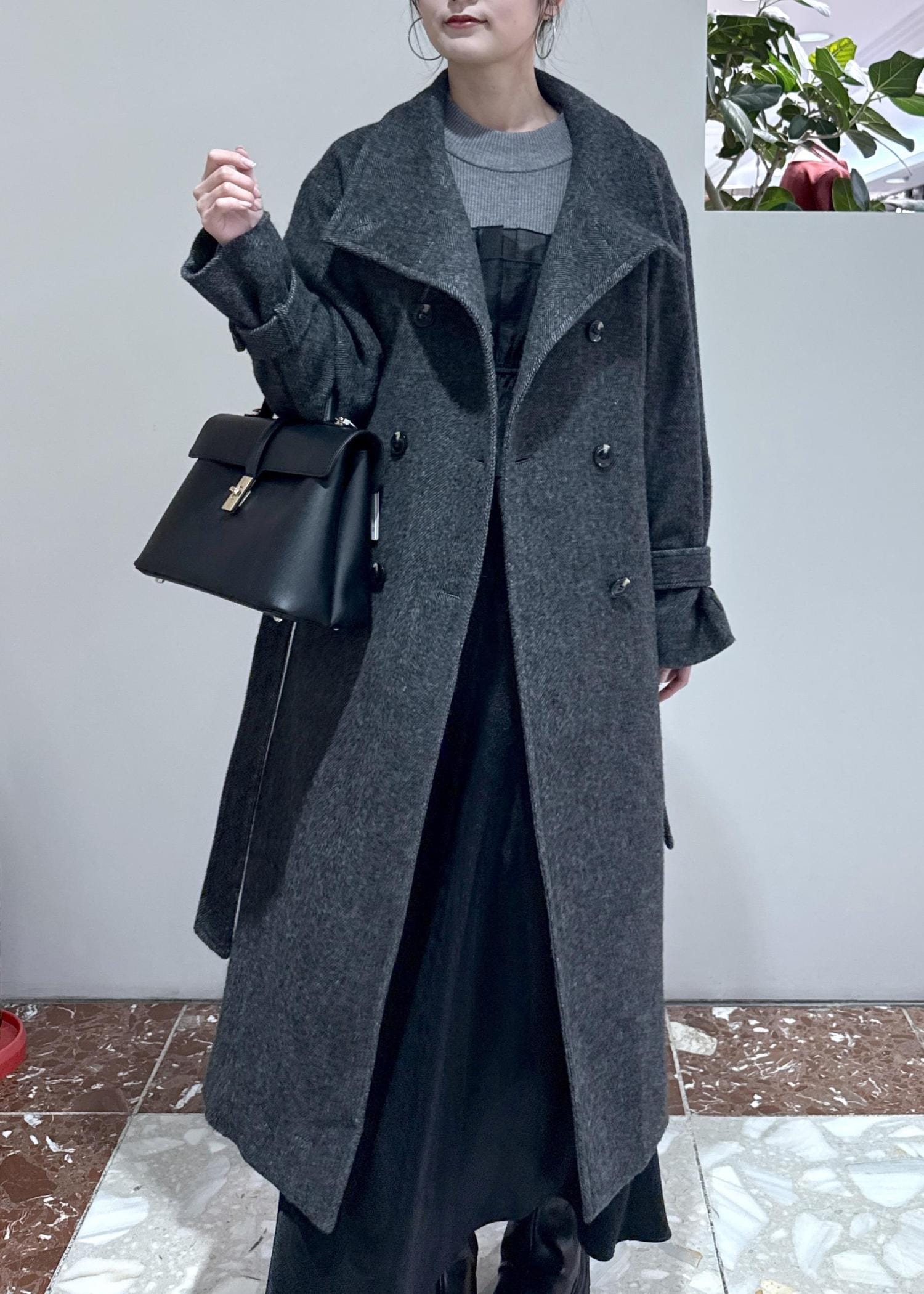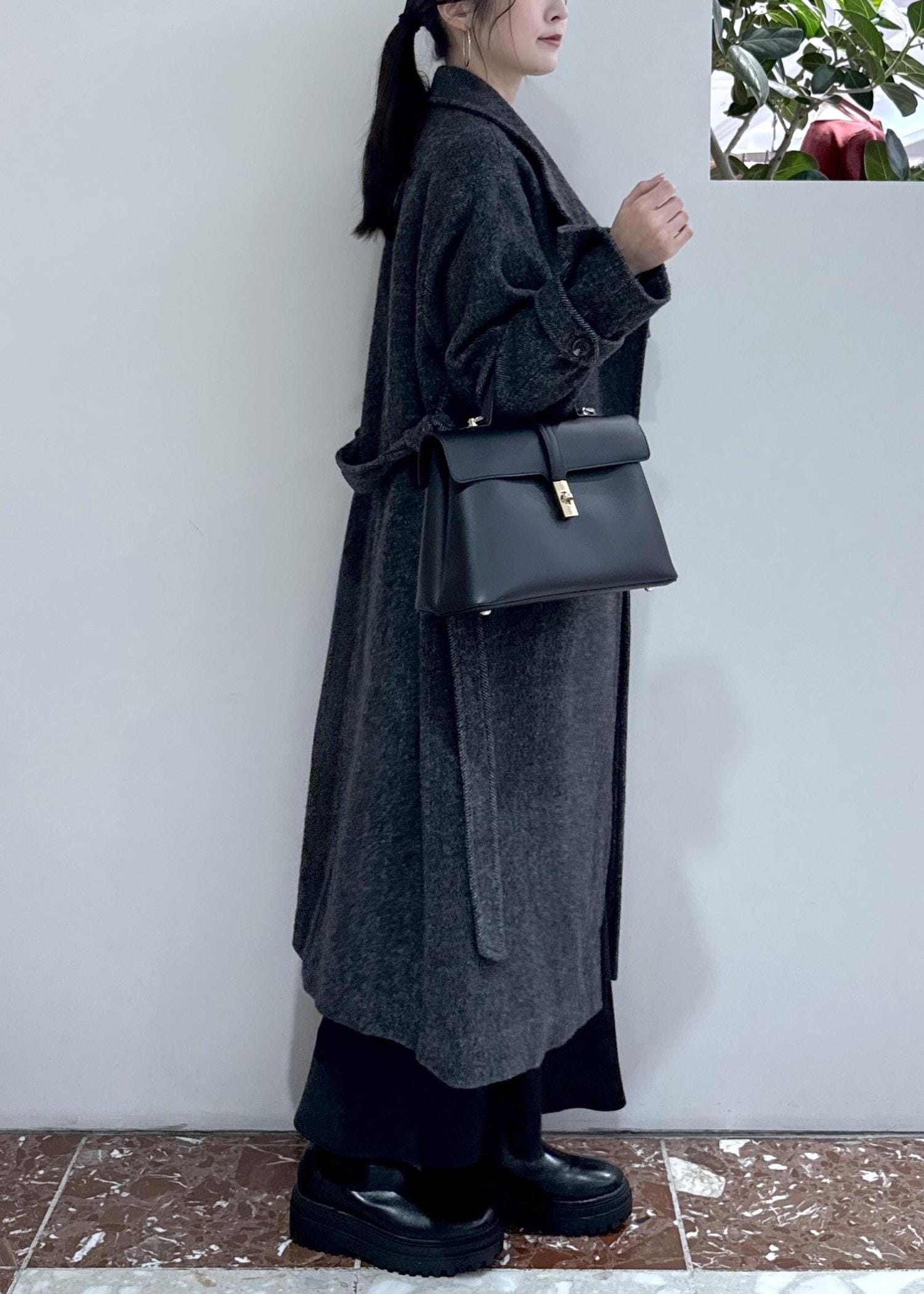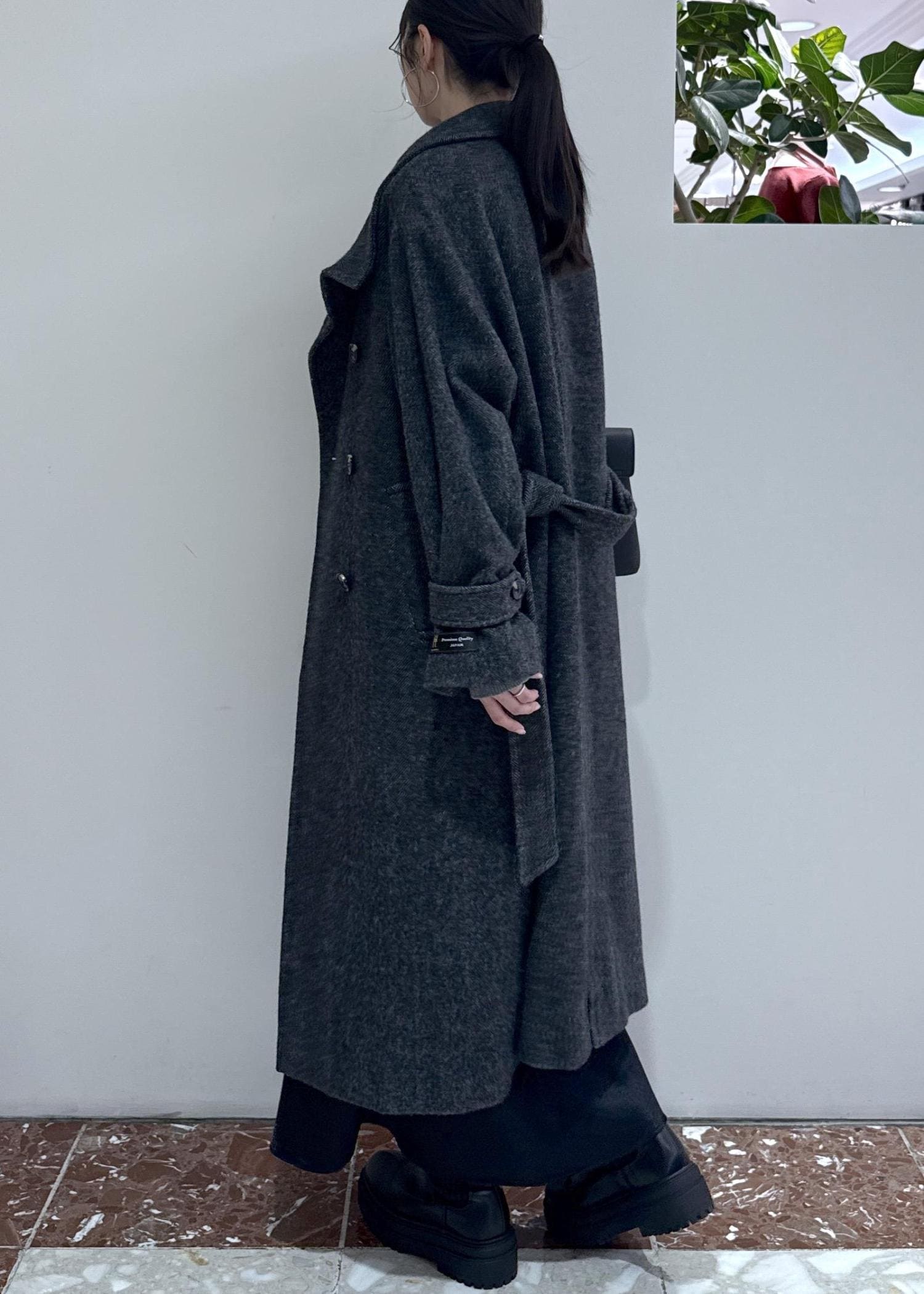 VIS尾州シャギースタンドカラーロングコート/静電気防止・WEB限定PS・TMサイズチャコール / M¥21,890レビュー164cmでMサイズ着用。