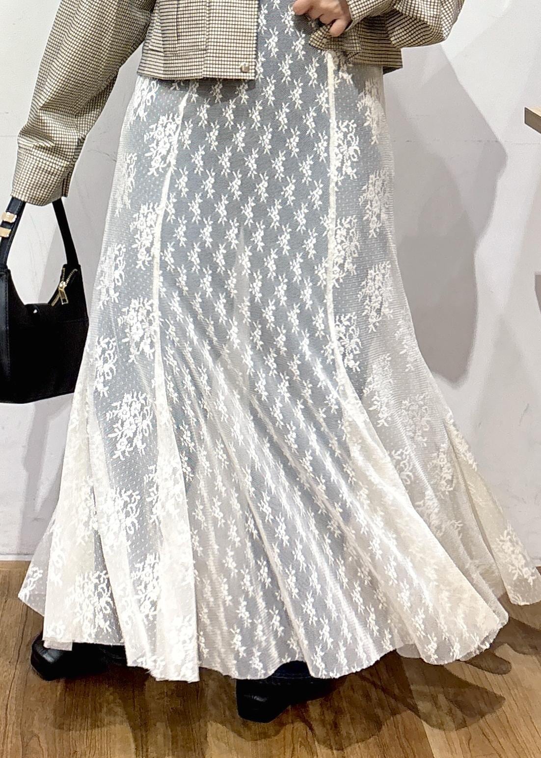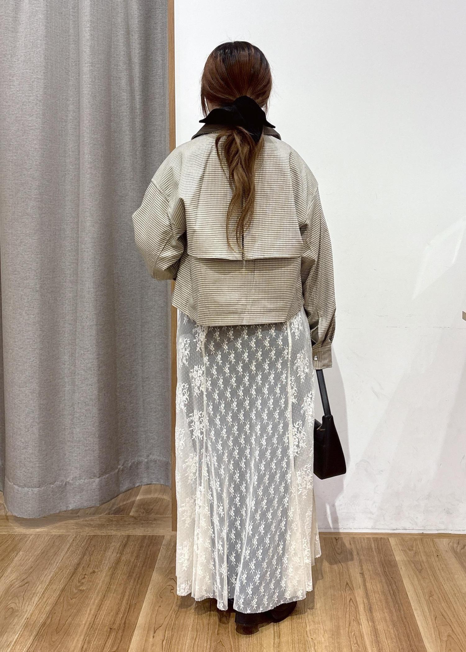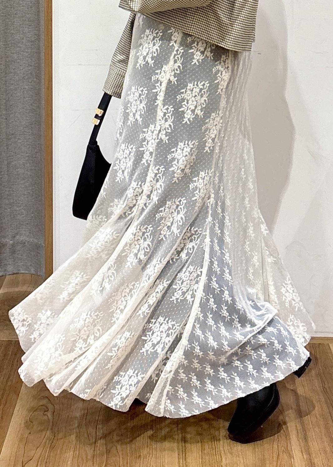 今年らしいトレンド感のある厚底のブーツに、レースのロングスカートを合わせてすらりとした印象にしてみました。