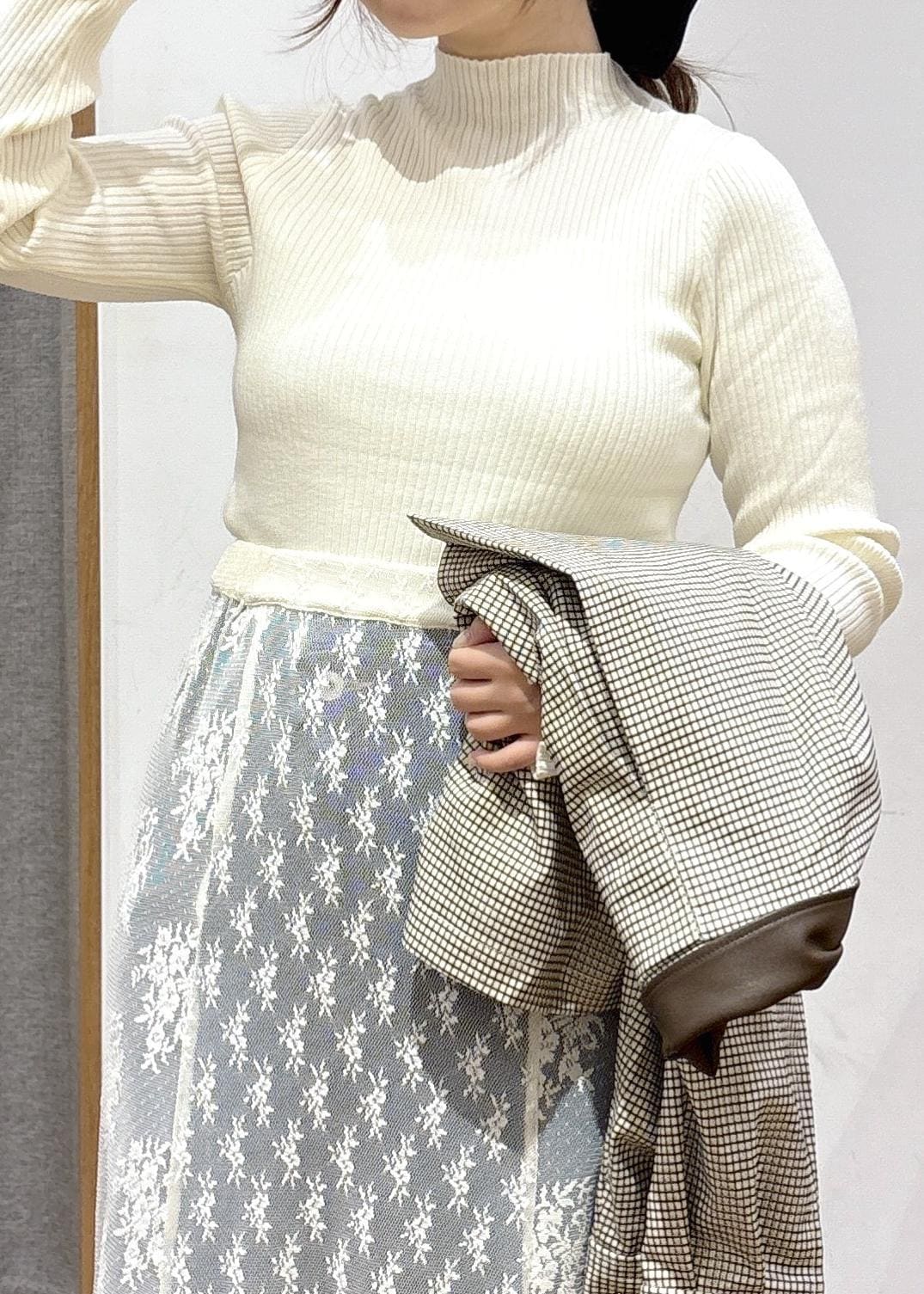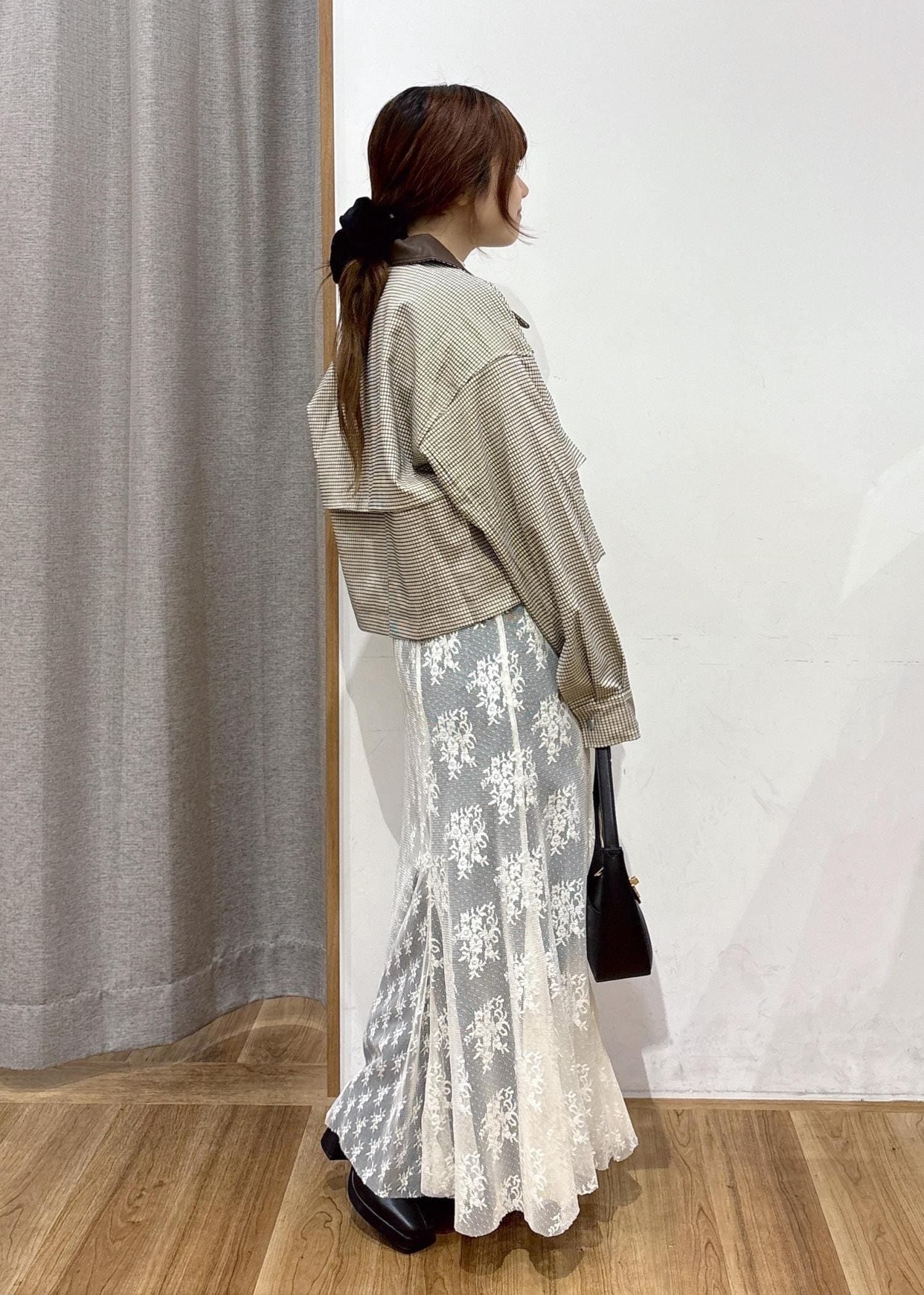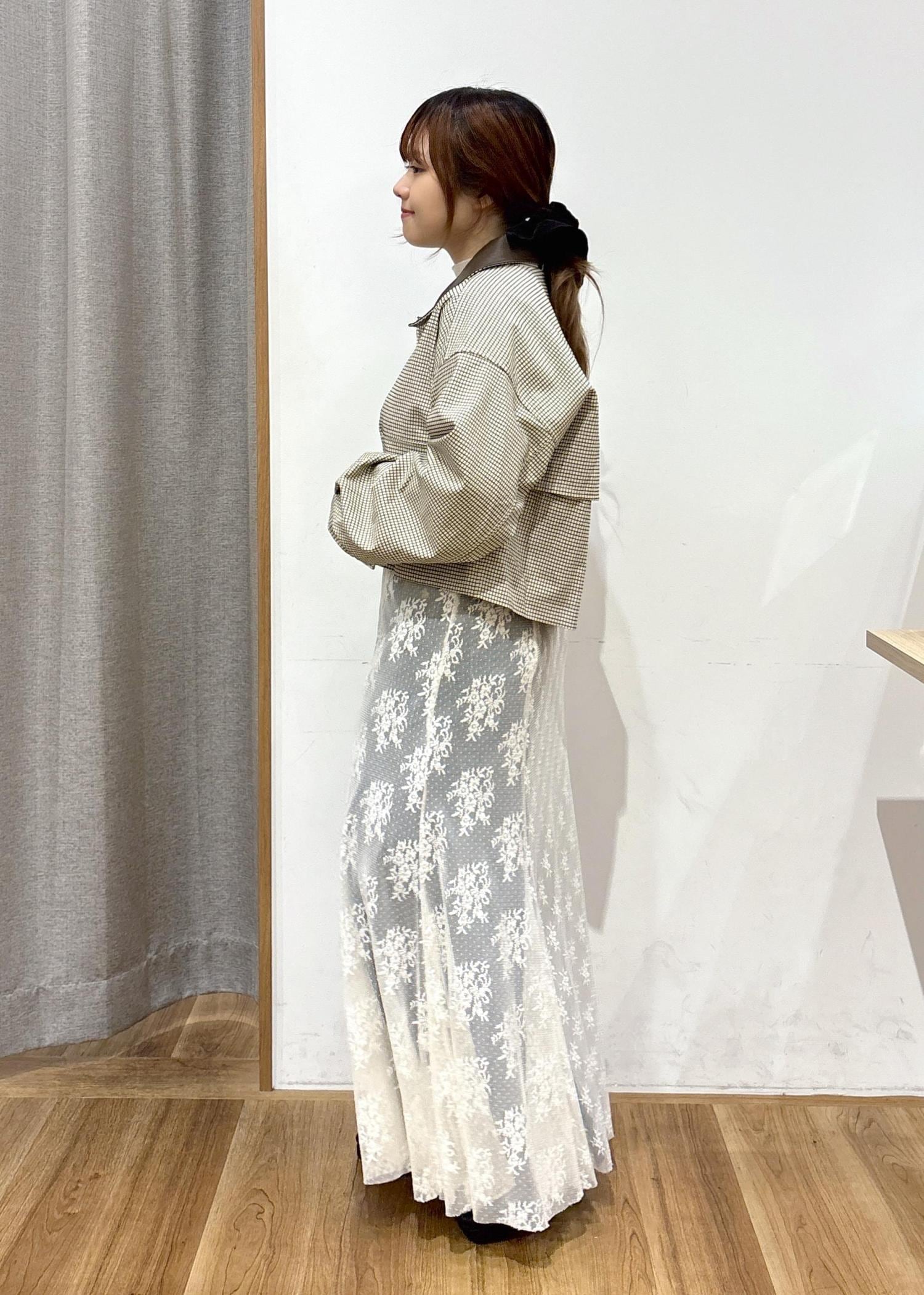 今年らしいトレンド感のある厚底のブーツに、レースのロングスカートを合わせてすらりとした印象にしてみました。