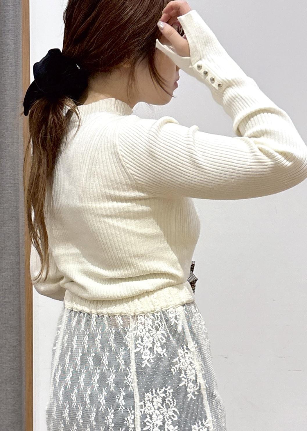 VISスリーブ釦アクセントリブニット/WEB限定FSサイズ・静電気防止オフホワイト / F¥4,389レビュー【着用感】