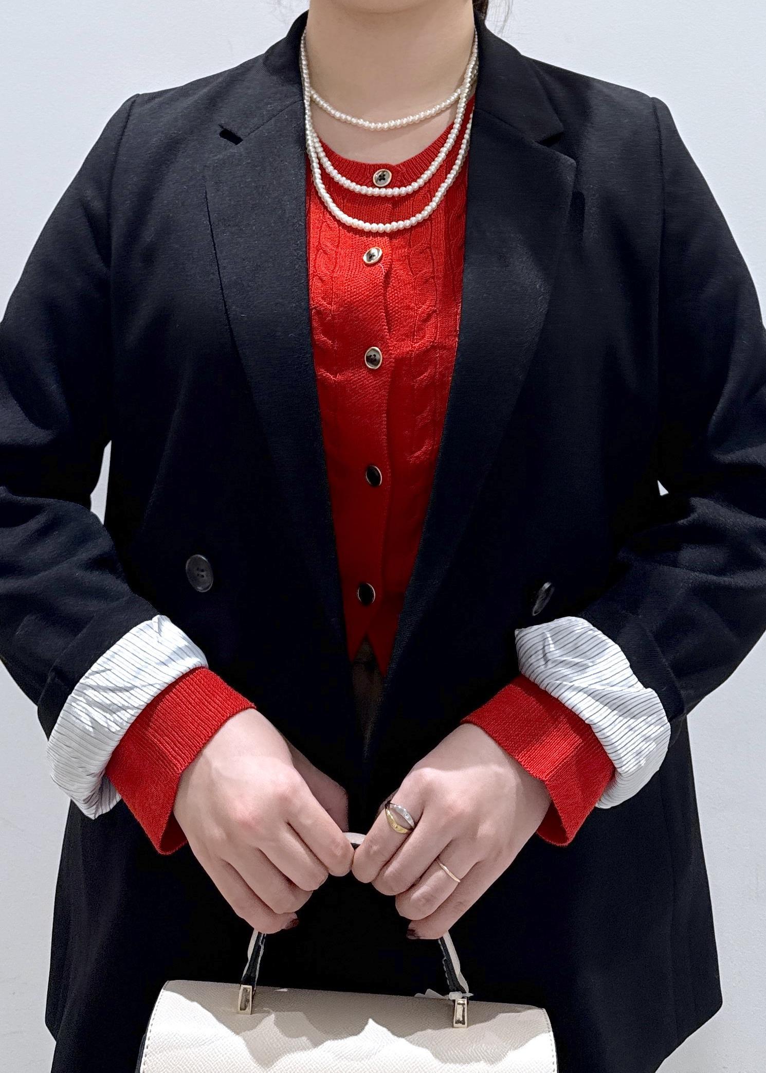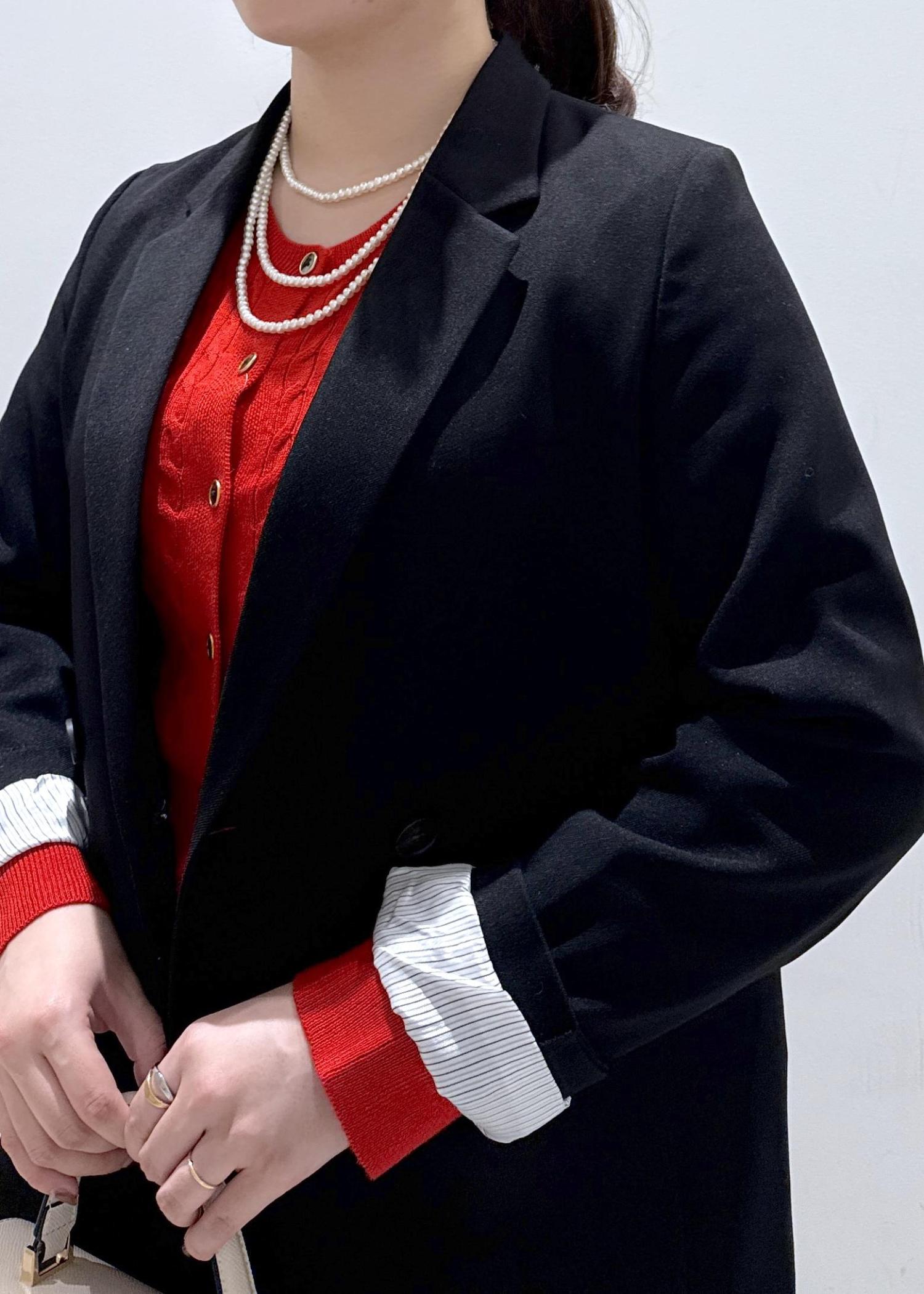 美easyシリーズのリネンライクジャケットではSサイズを着用していましたが、ウーリッシュジャケットではSだと裏地が付いているからかキツく感じ、こちらではMサイズがジャストサイズでした。ブラウスだとSでも良さそうですが、厚みのあるニット素材もこれから着たい方はMサイズをオススメします。またジャケットの素材感では生地が分厚すぎず、身長157cmでお尻が隠れるぐらいの長さで安心しました。 -