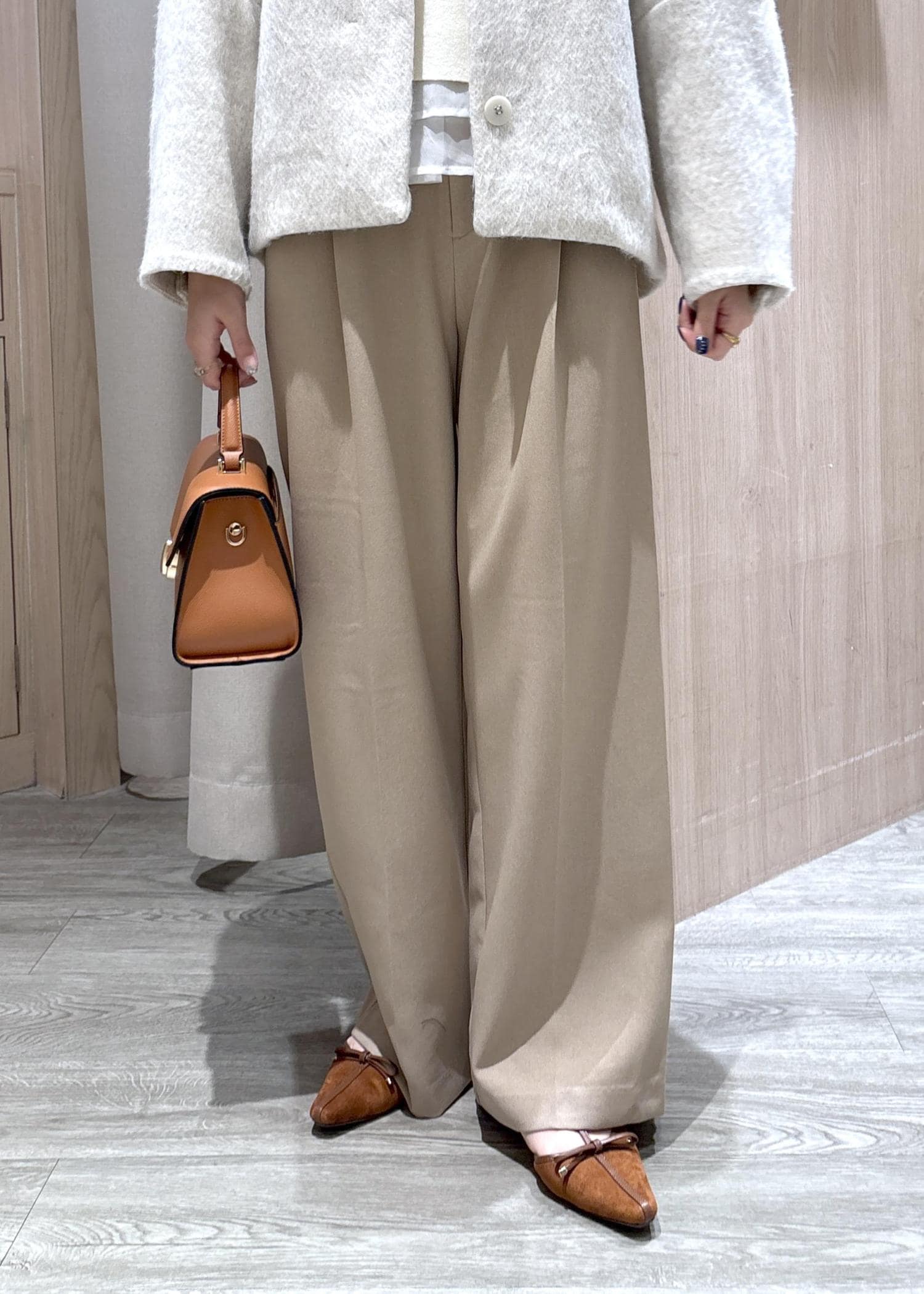VIS【美easy】ウーリッシュワンタックワイドパンツ【セットアップ対応/洗える】ベージュ / L¥6,589レビュー裏地なしですが、生地感厚めなので、インナーが透けることもなくひびきずらいです。