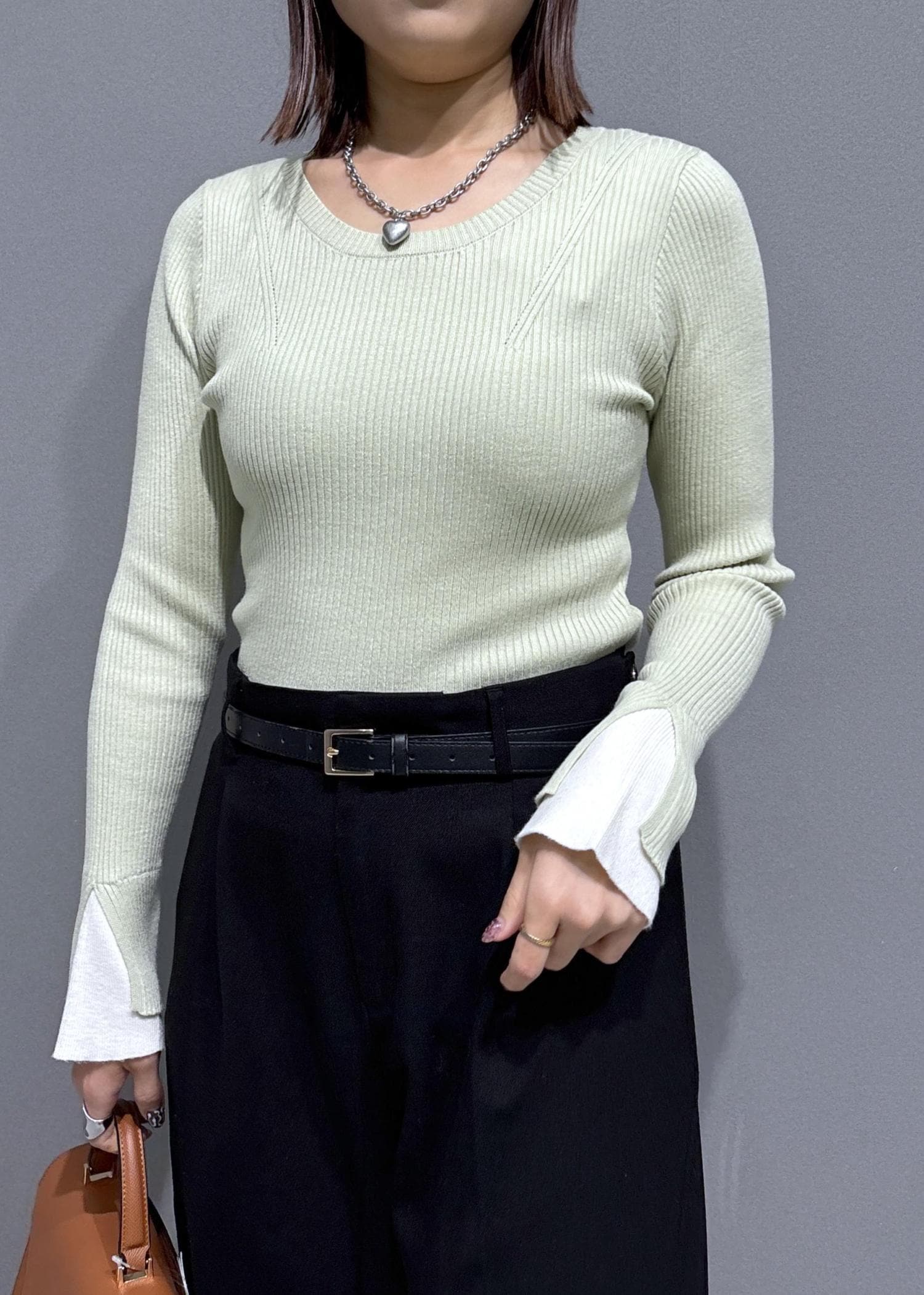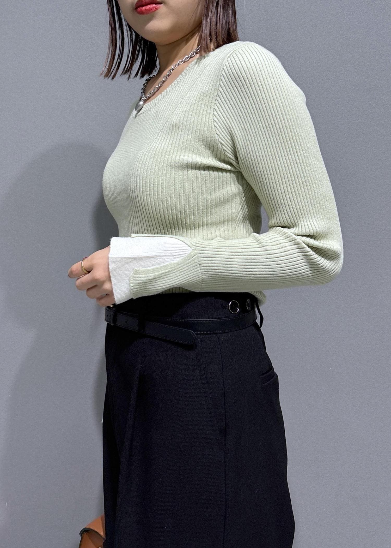 VIS配色ダブルスリーブリブニットライトグリーン / F¥5,489レビューとても柔らかくて伸縮性のあるニット。