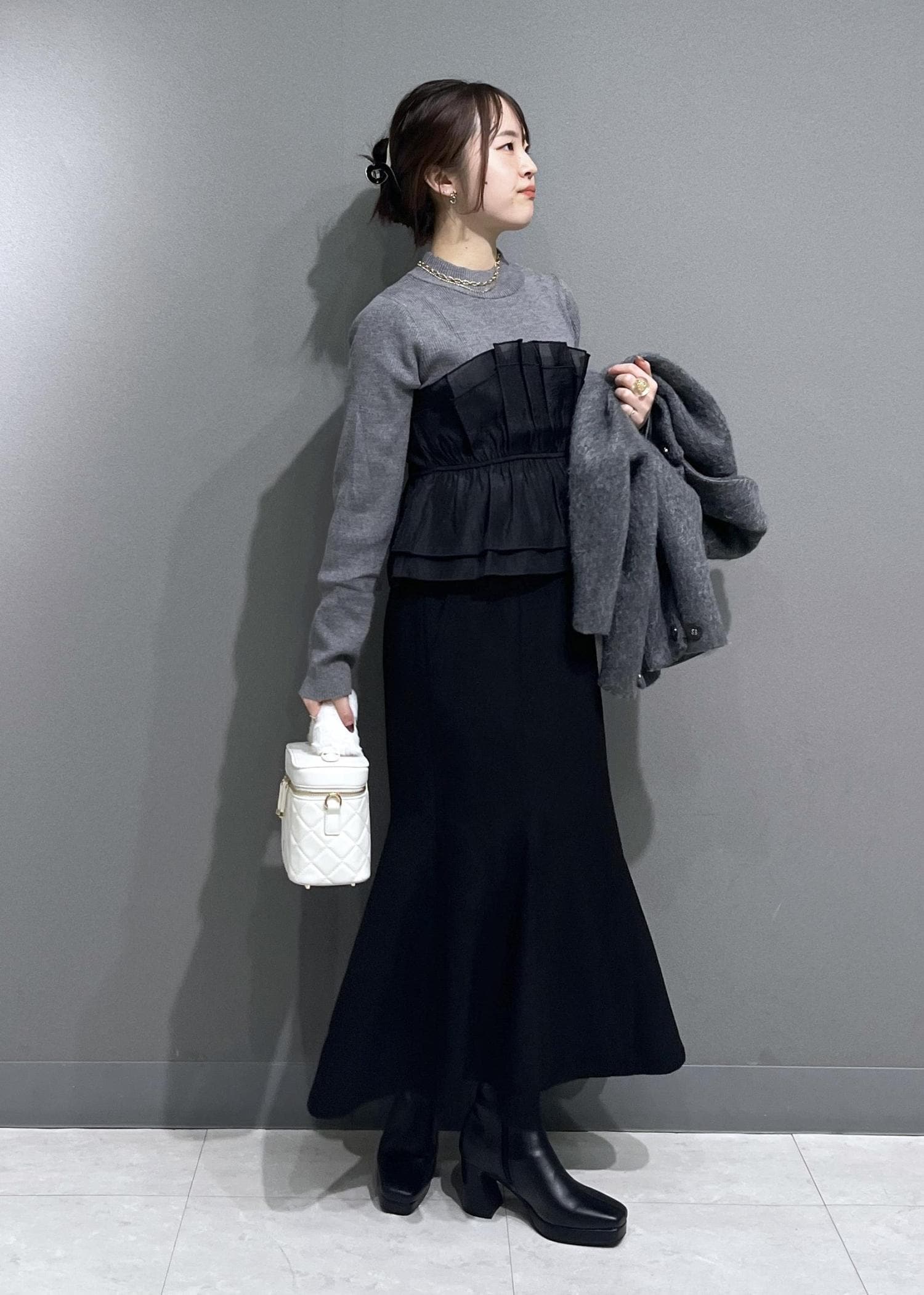 今回はスカート合わせにしてますが、つま先部分がスクエアの形なのでパンツ合わせでも決まるアイテムです! -
