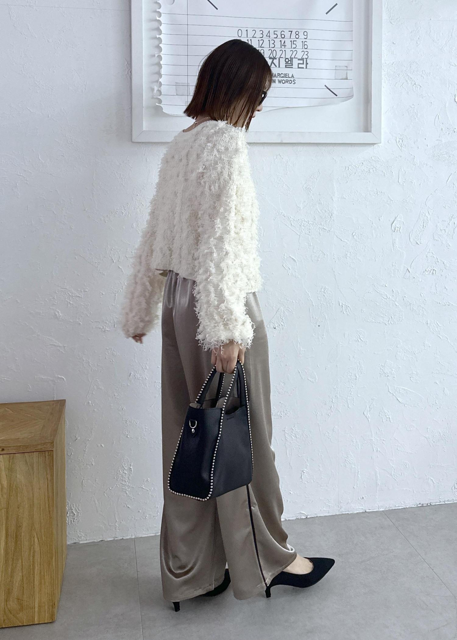 程よいゆるっと感で中にインナーを着てもごわつかないです!丈はコンパクトめなのでボトムスを選ばずにお召しいただけます。 -