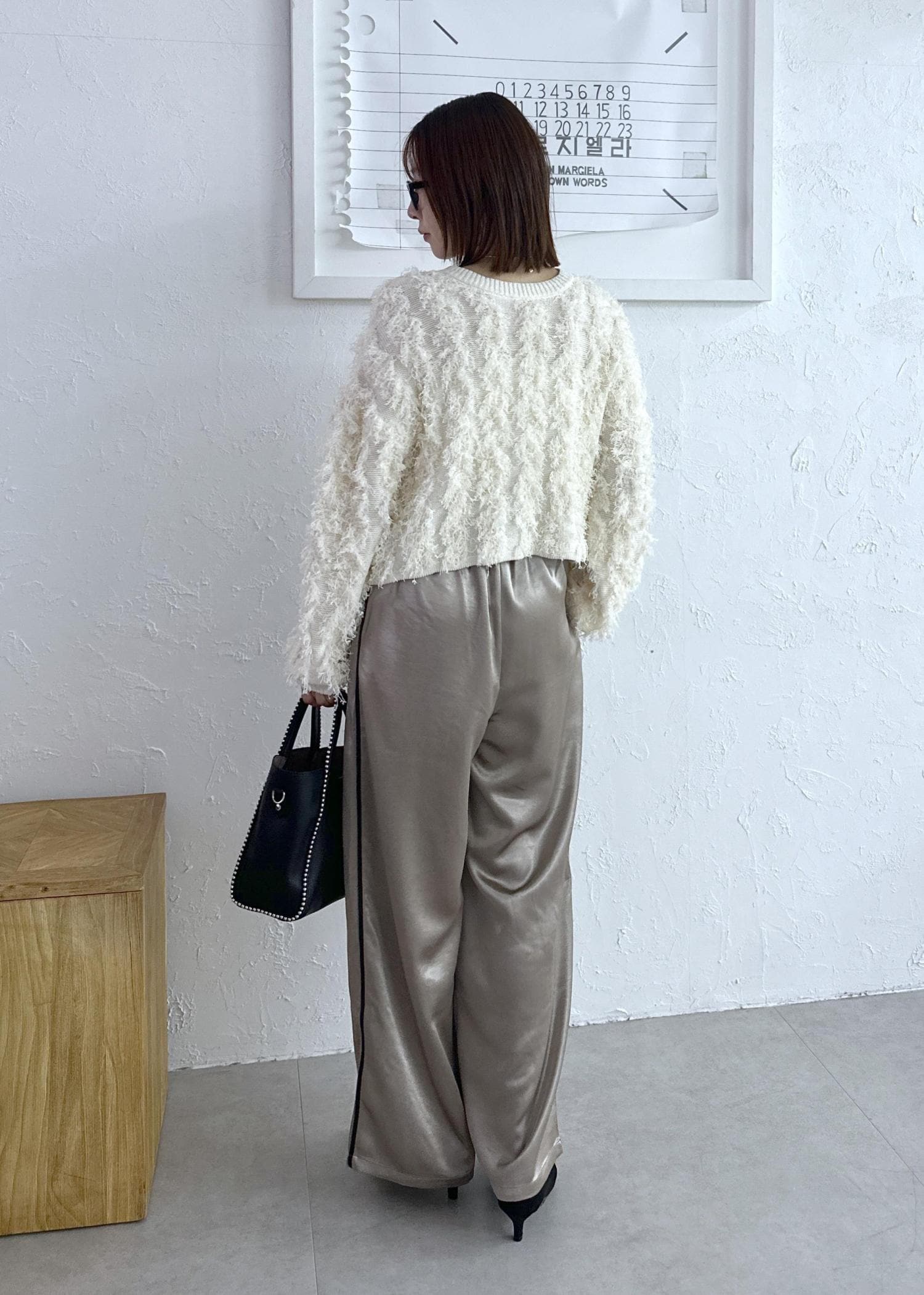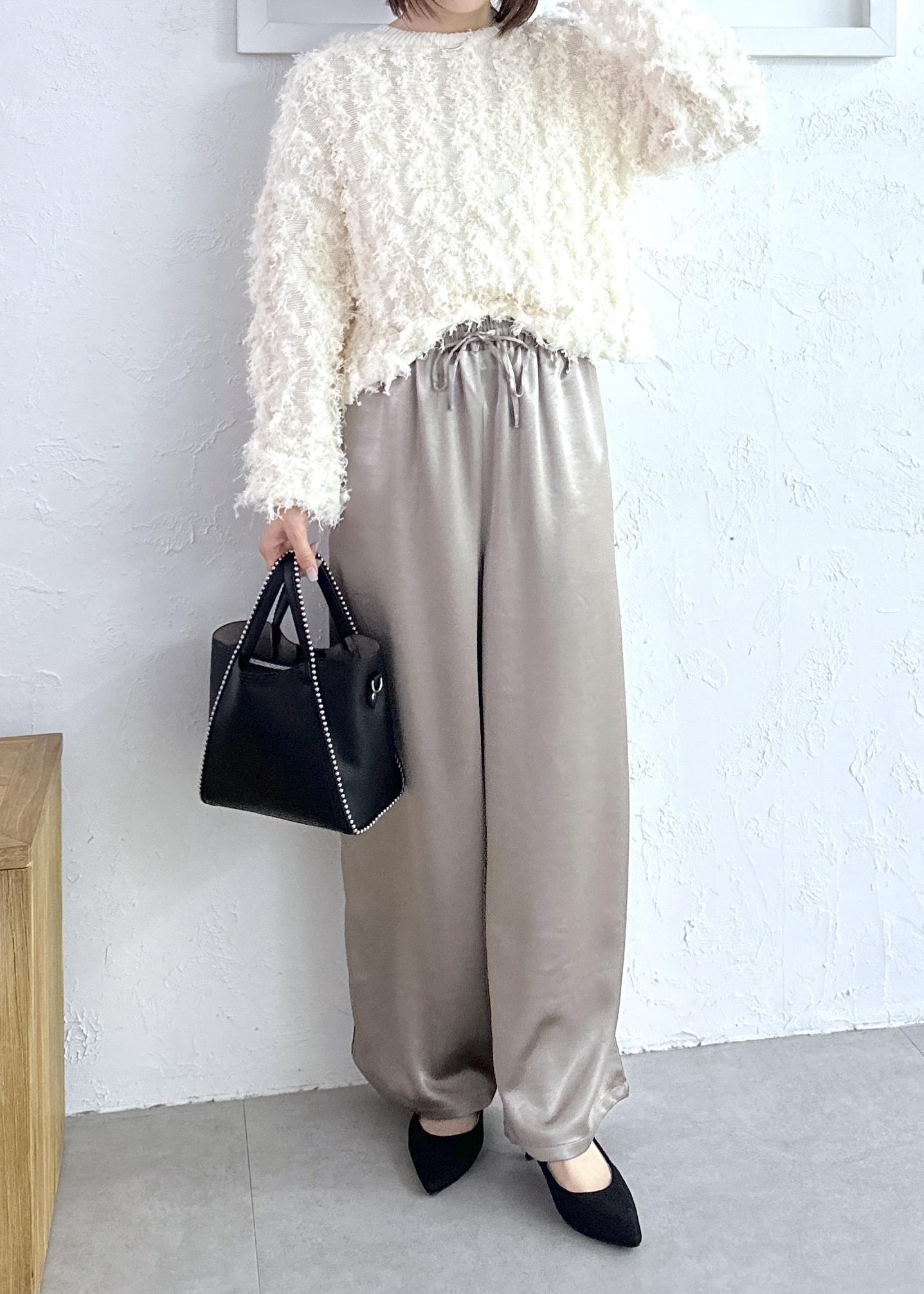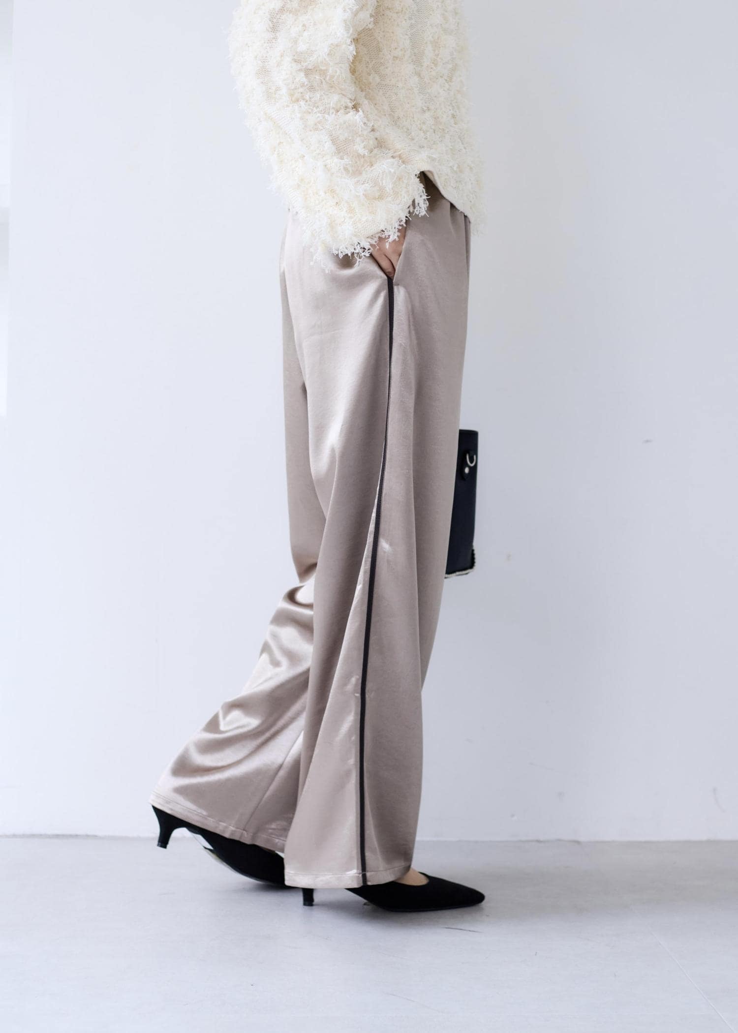 VIS【WEB/一部店舗限定】配色サイドラインサテンイージーパンツベージュ / F¥4,612レビュー光沢感のあるサテン素材で楽に履けるパンツです!
