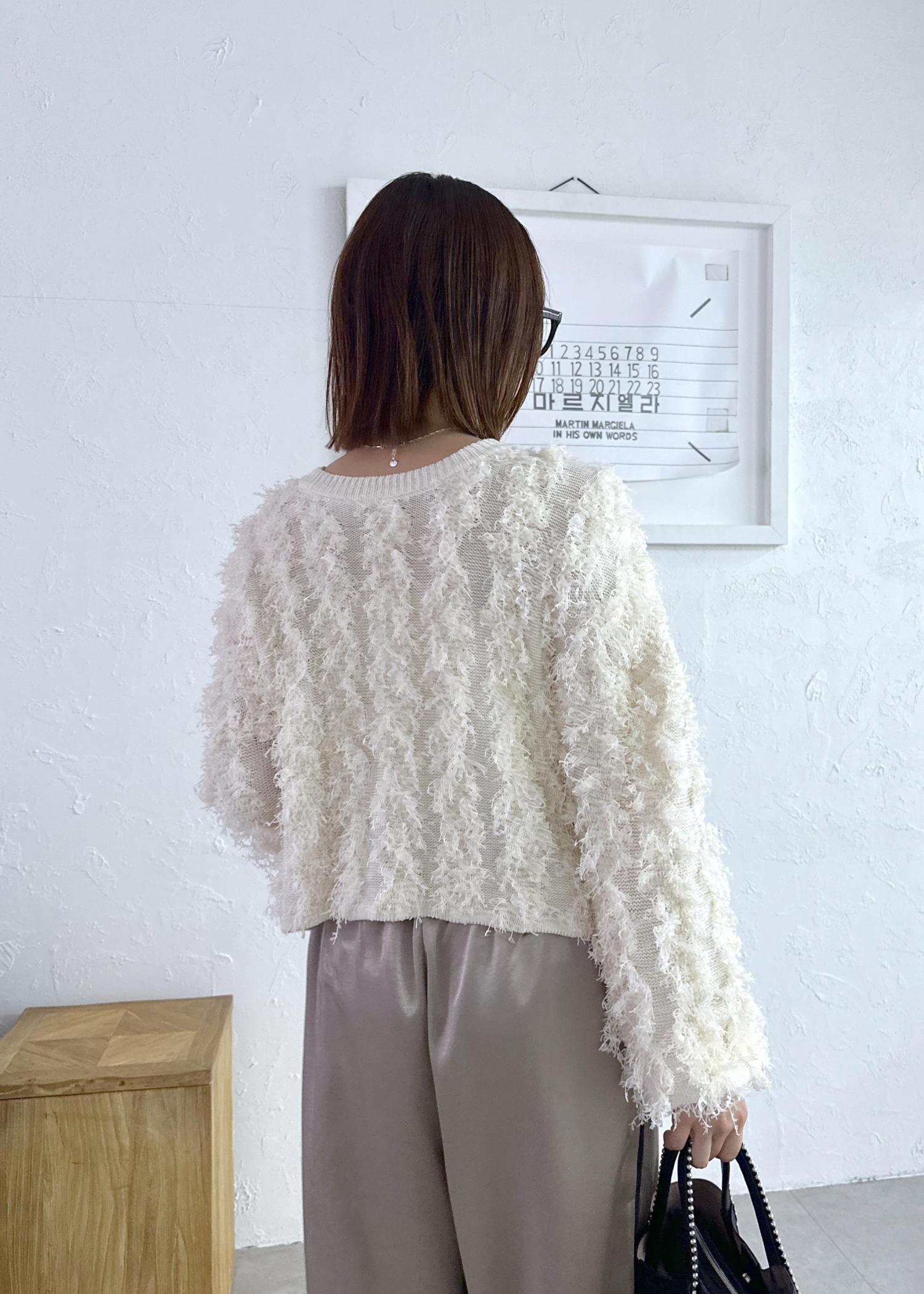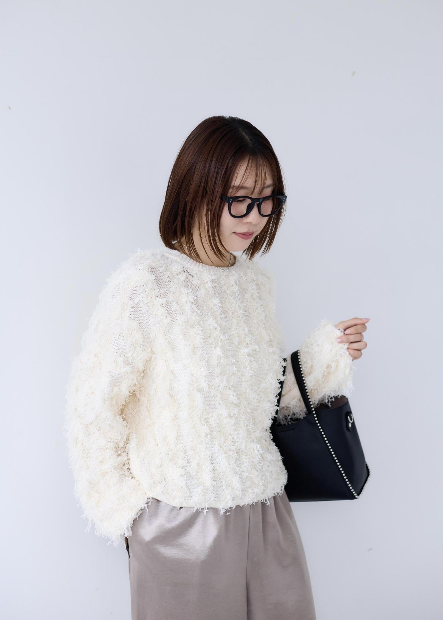 VISリボンヤーンフリンジニットプルオーバーオフホワイト / F¥6,589レビュートレンドのフリンジニット。