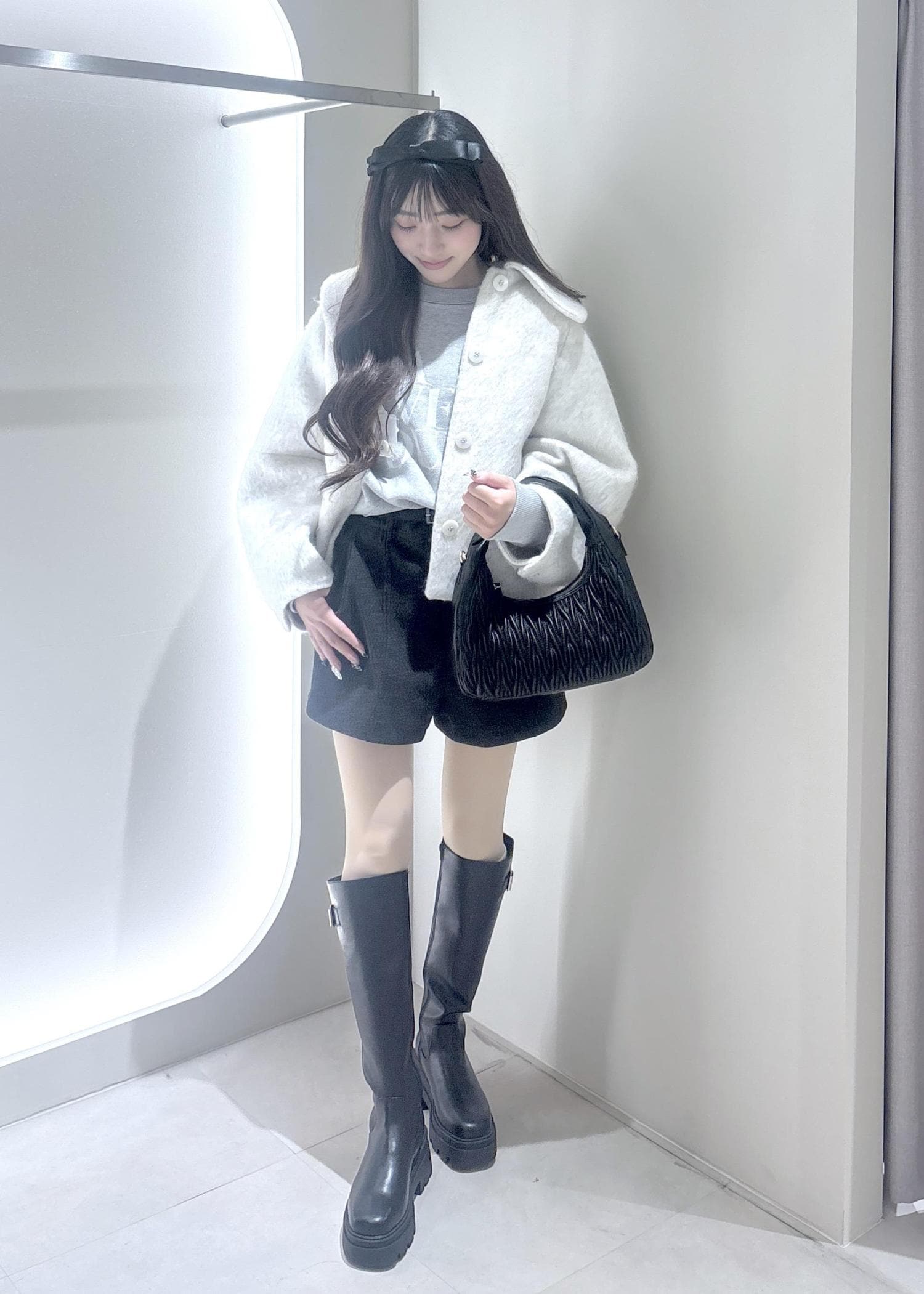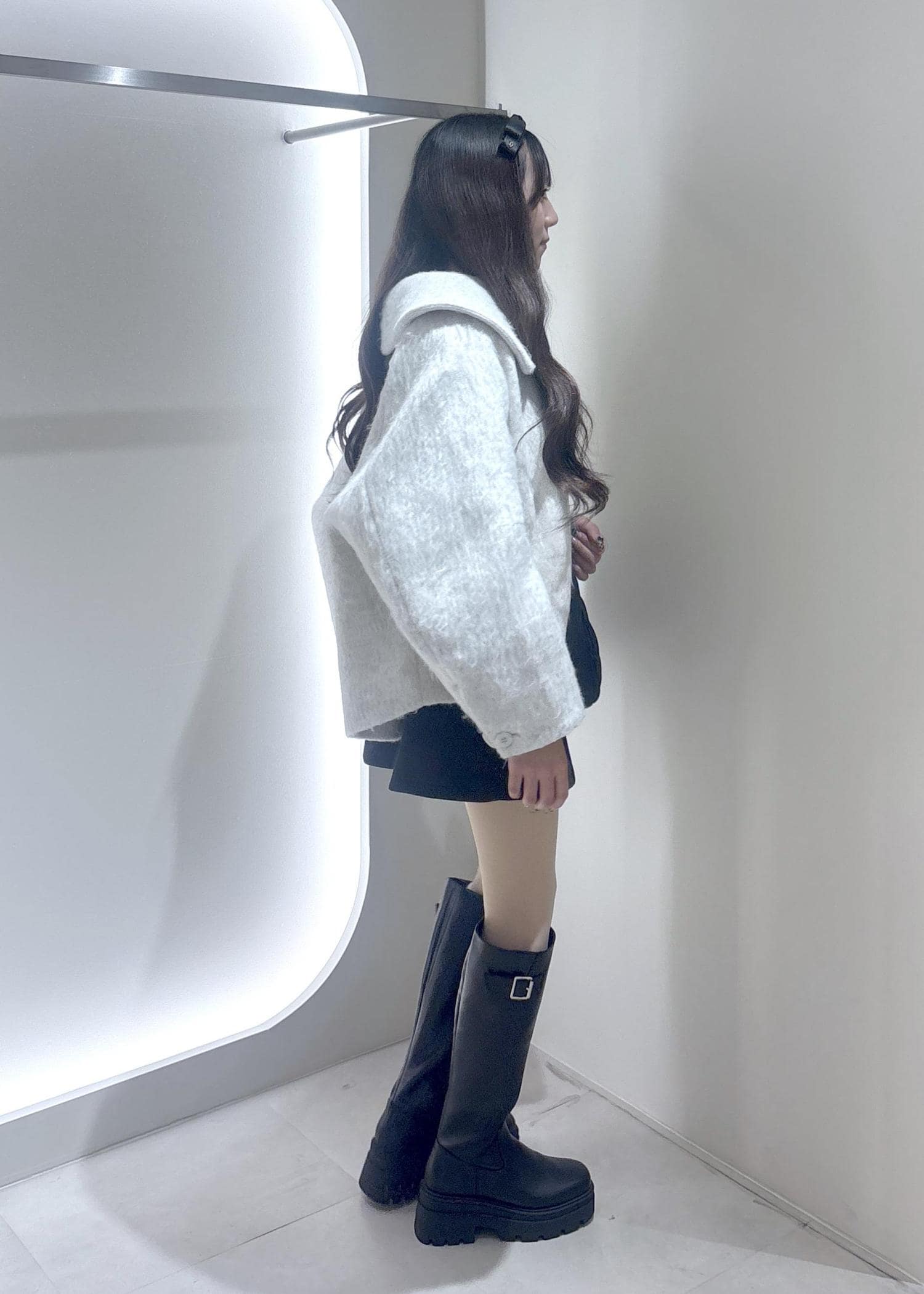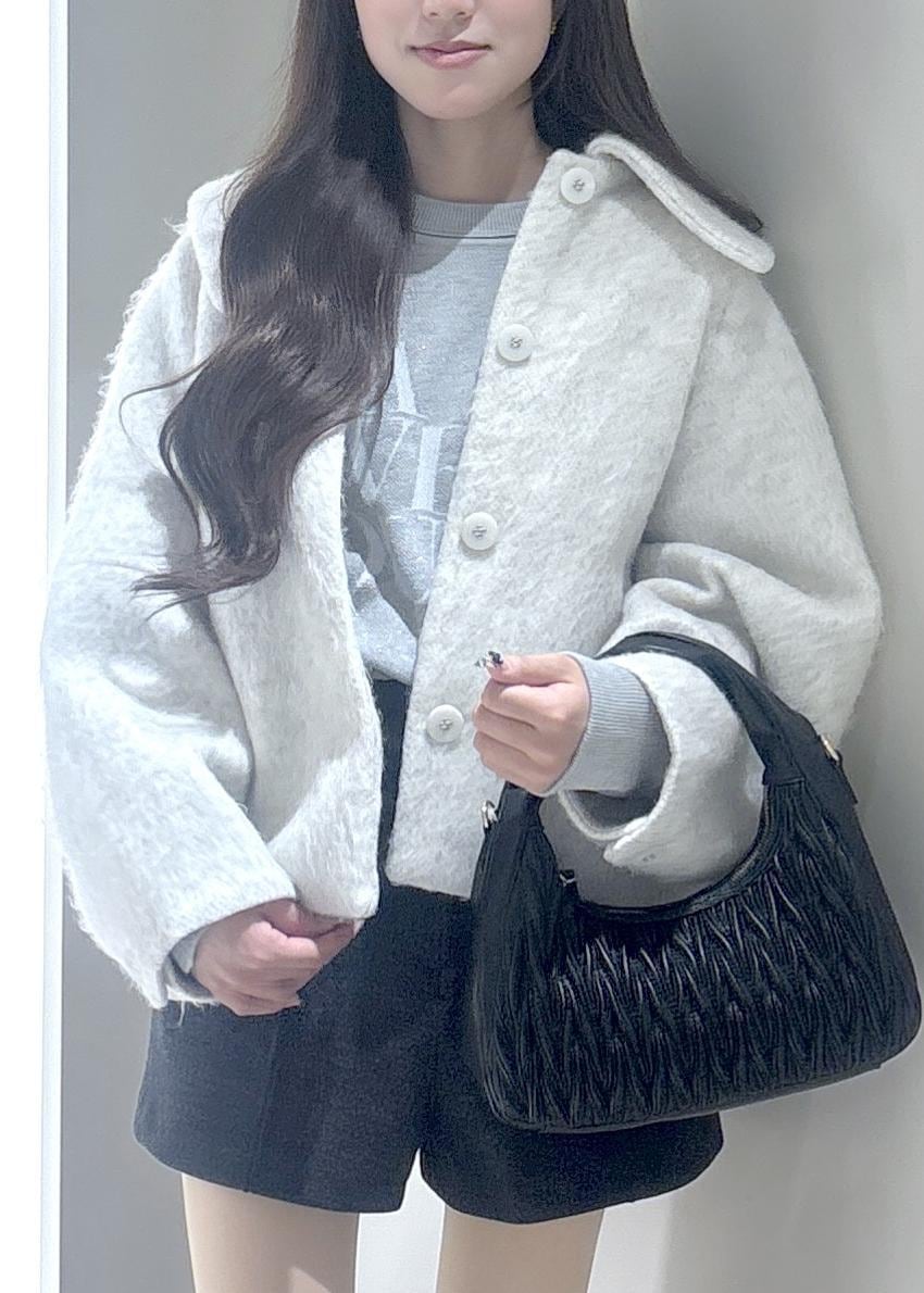 予約VIS【アウター総選挙1位】ビッグカラーモモンガシャギーショートコートオフホワイト / S¥10,989レビュー身長155cmでお尻が少し隠れる丈感です。