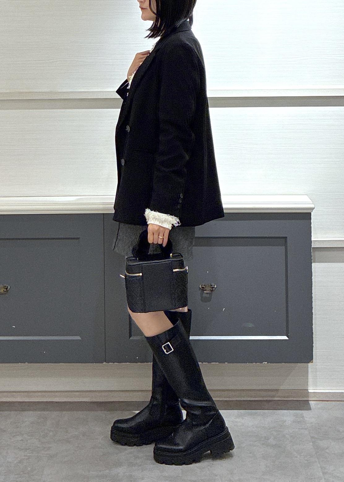 ロングブーツとジャケットをブラックで統一すると幼くなり過ぎないので嬉しいです♡