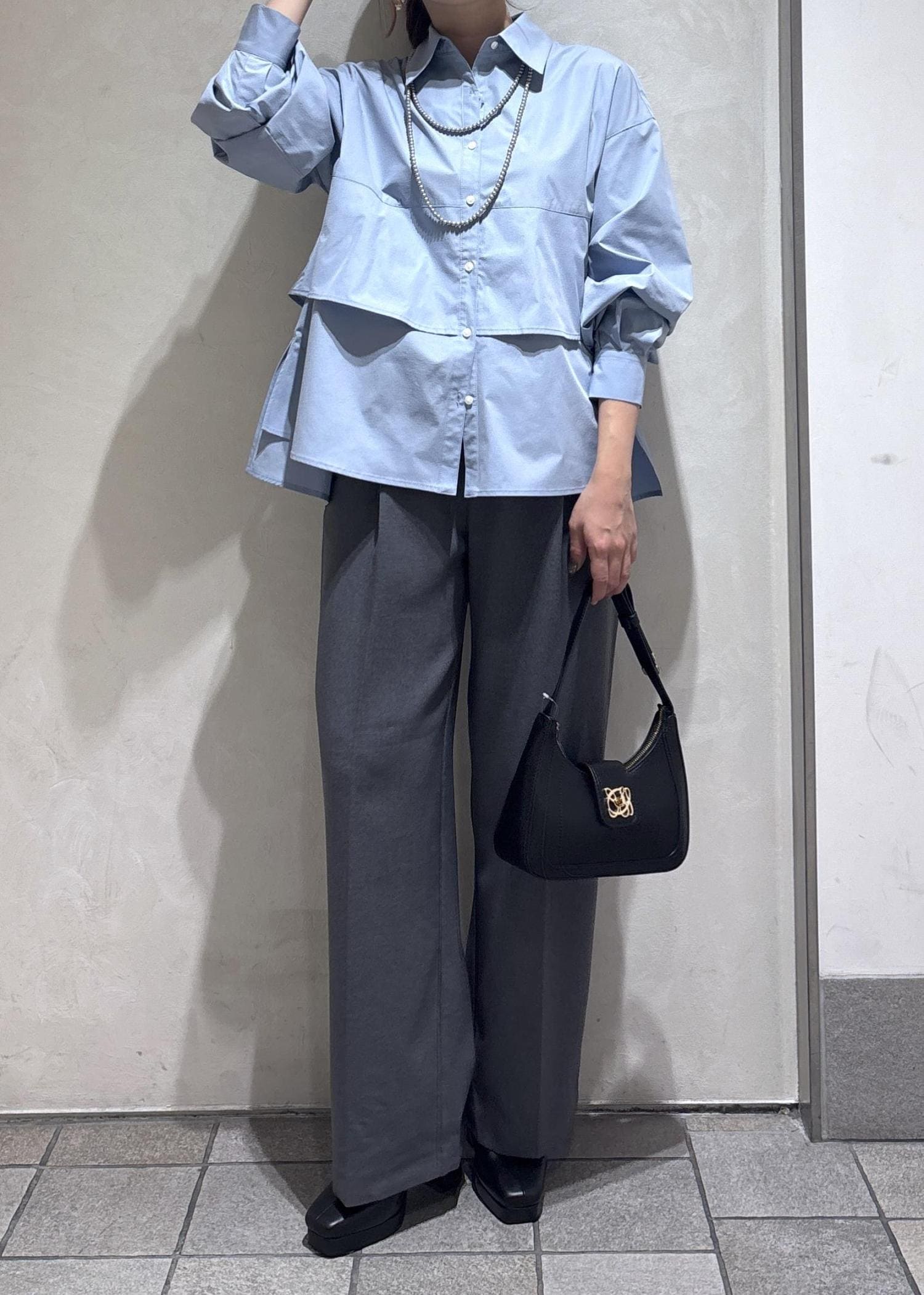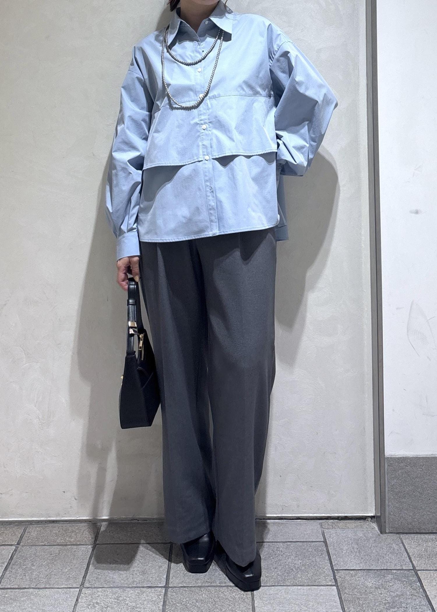 サックスブルーのティアードシャツを