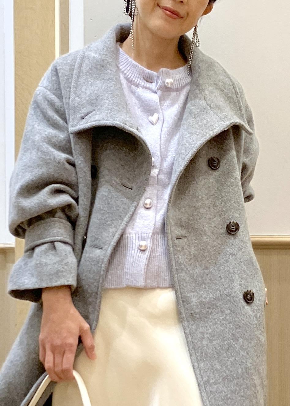本格的に寒い日は、襟元を立ててスタンドデザインにする着方もオススメですよ。 -