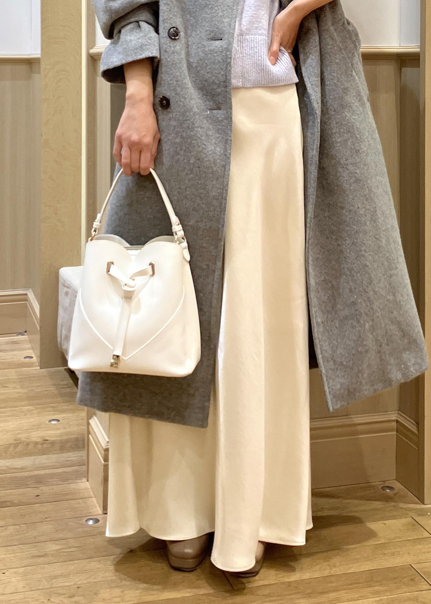 今回は光沢感がキレイなロングスカートを合わせて綺麗目にまとめてみました。