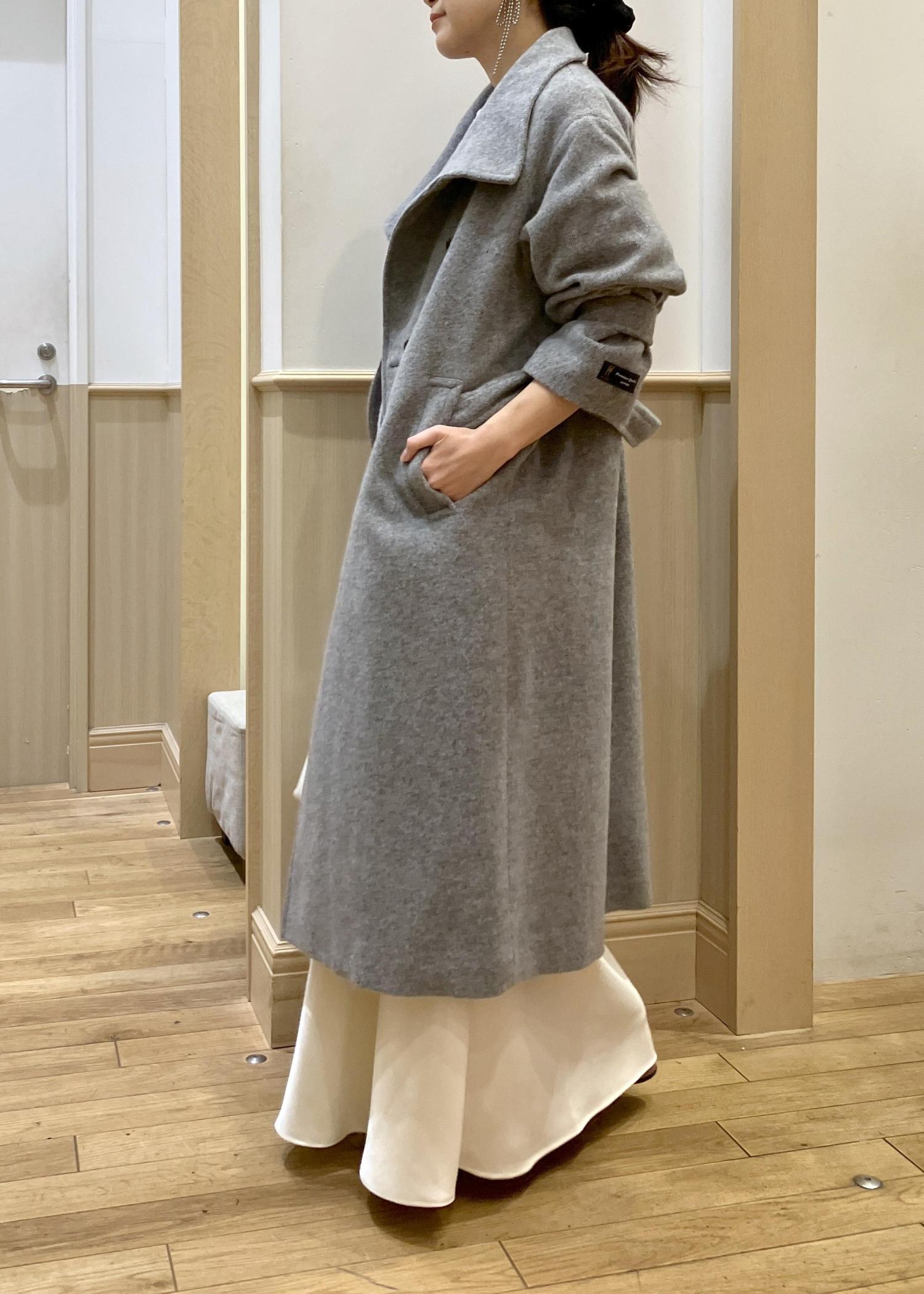 VISのロングコートは着心地もストレスフリーで重たくなく、ウエストマークするとレディに着られる美しいコートなのでオススメですよ。