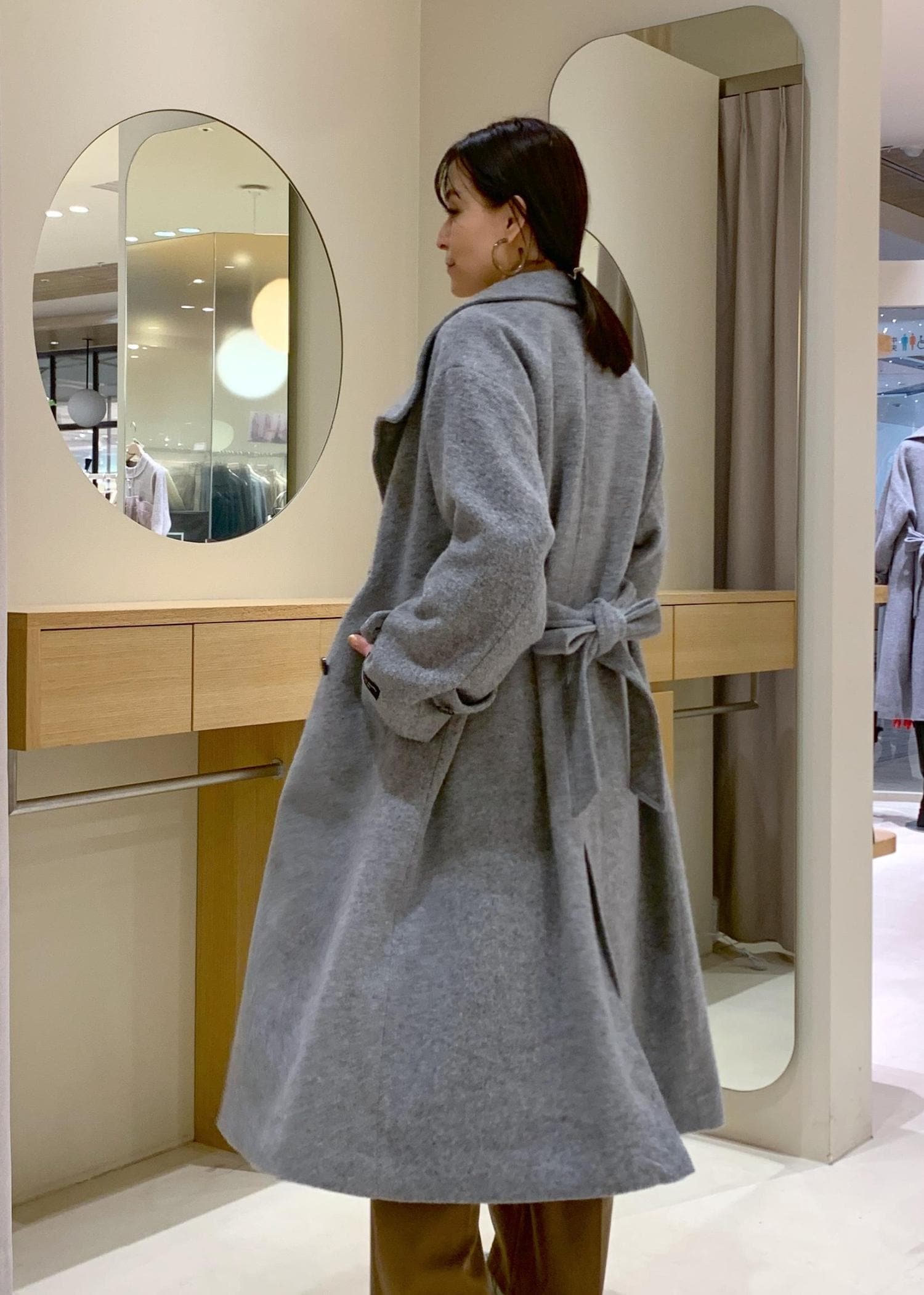 Mサイズでも充分な長さですが、168cm〜170cm台の方はWEB限定の長さでさらにロング丈でも良いかと思います。