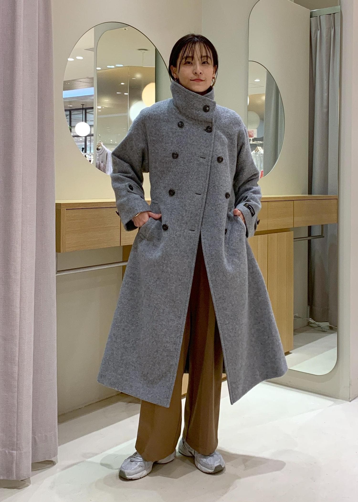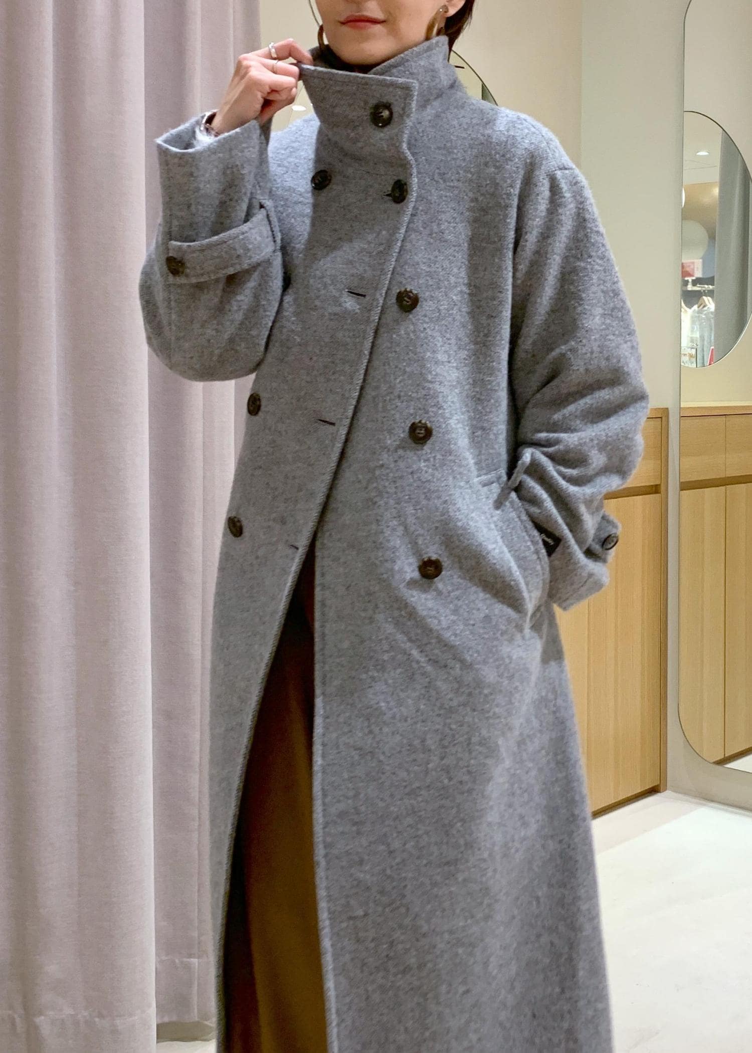 尾州シャギースタンドカラーロングコート/静電気防止・WEB限定PS・TMサイズ