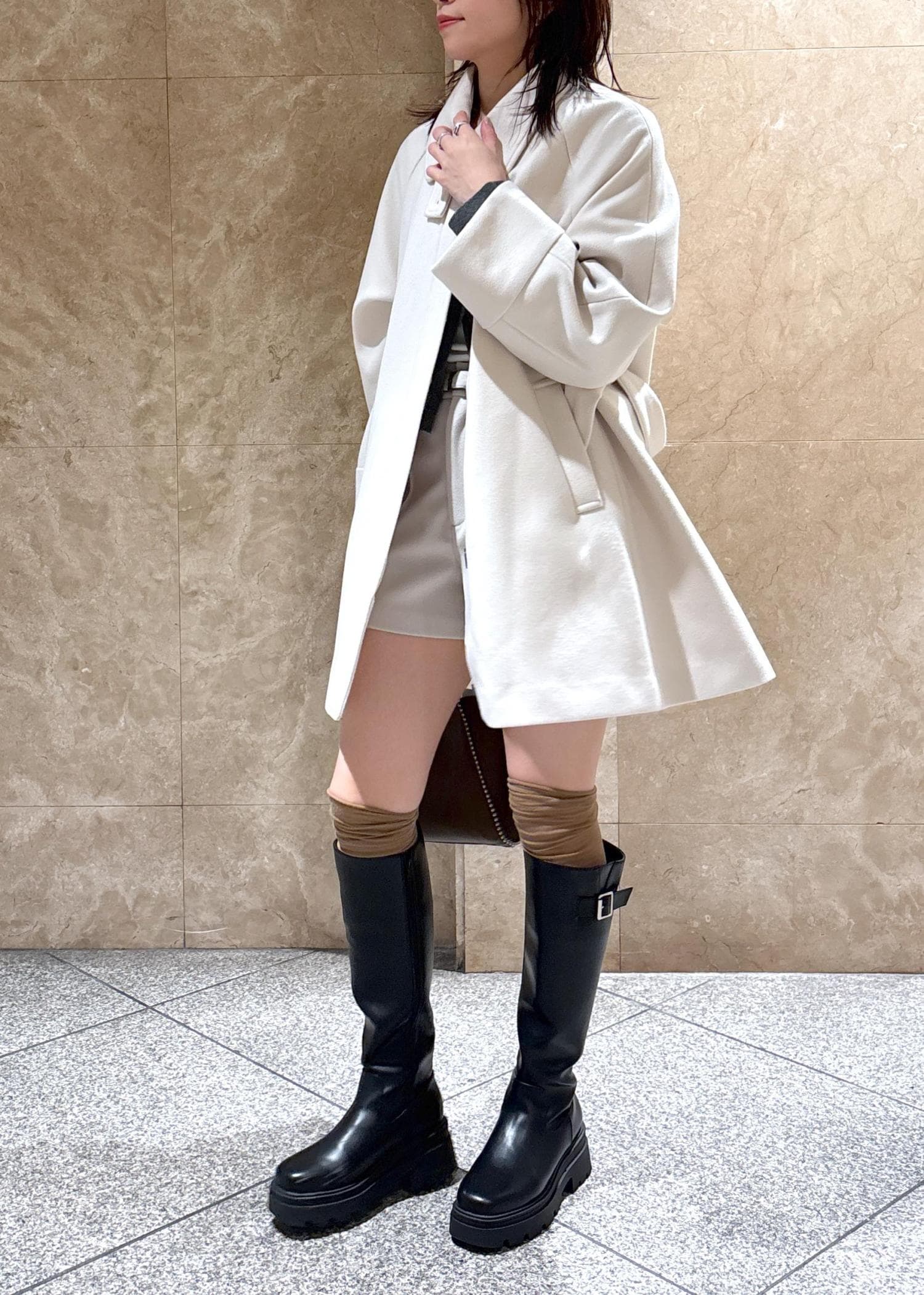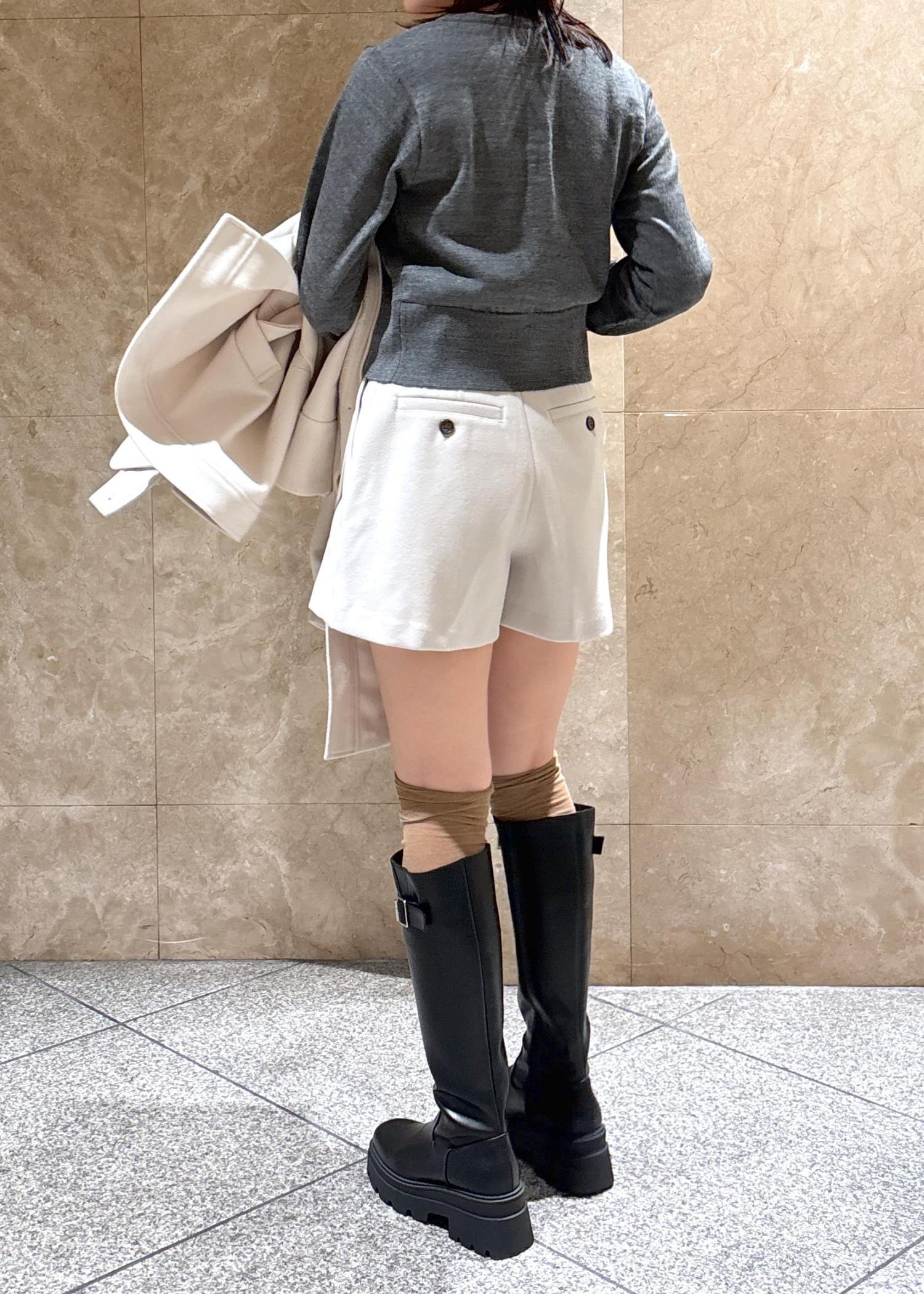Aラインのシルエットなので、太もも周りが細く見えます。