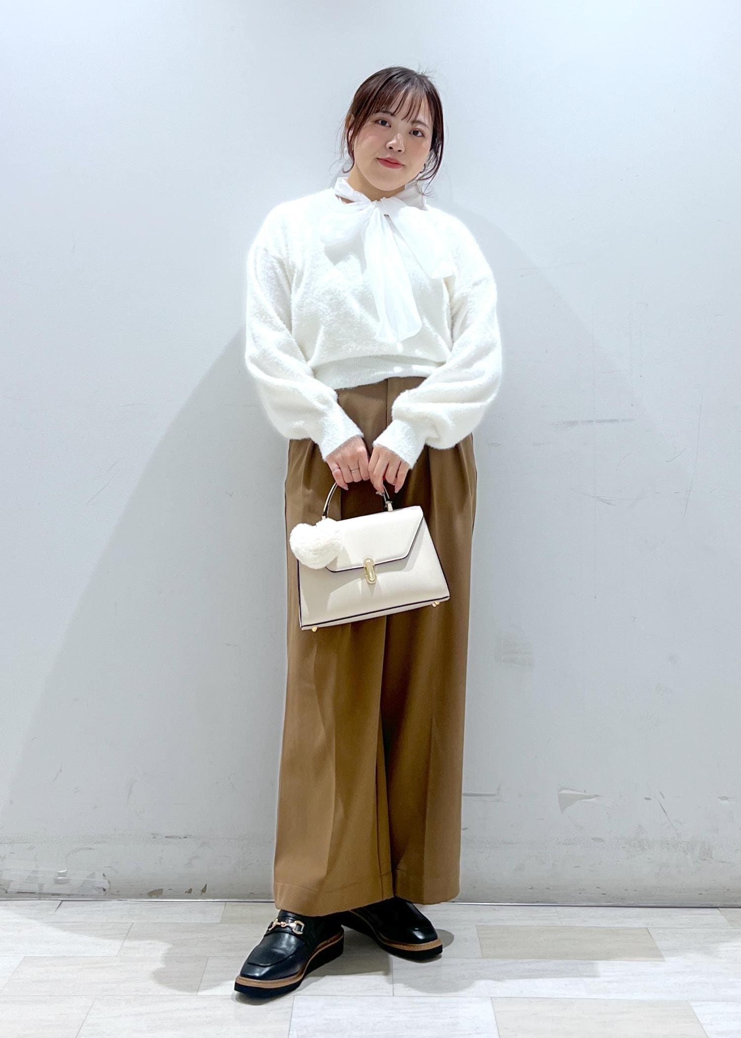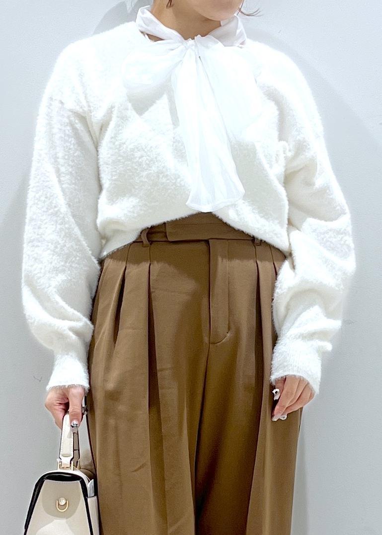 VISシアーボウタイリボン付きフェザーニットプルオーバー/2WAY・イージーケアオフホワイト / F¥6,589レビューふわふわ柔らかく着心地抜群のフェイクファーニット!ボタンで取り外し可能なシャイニーボウタイがついています。