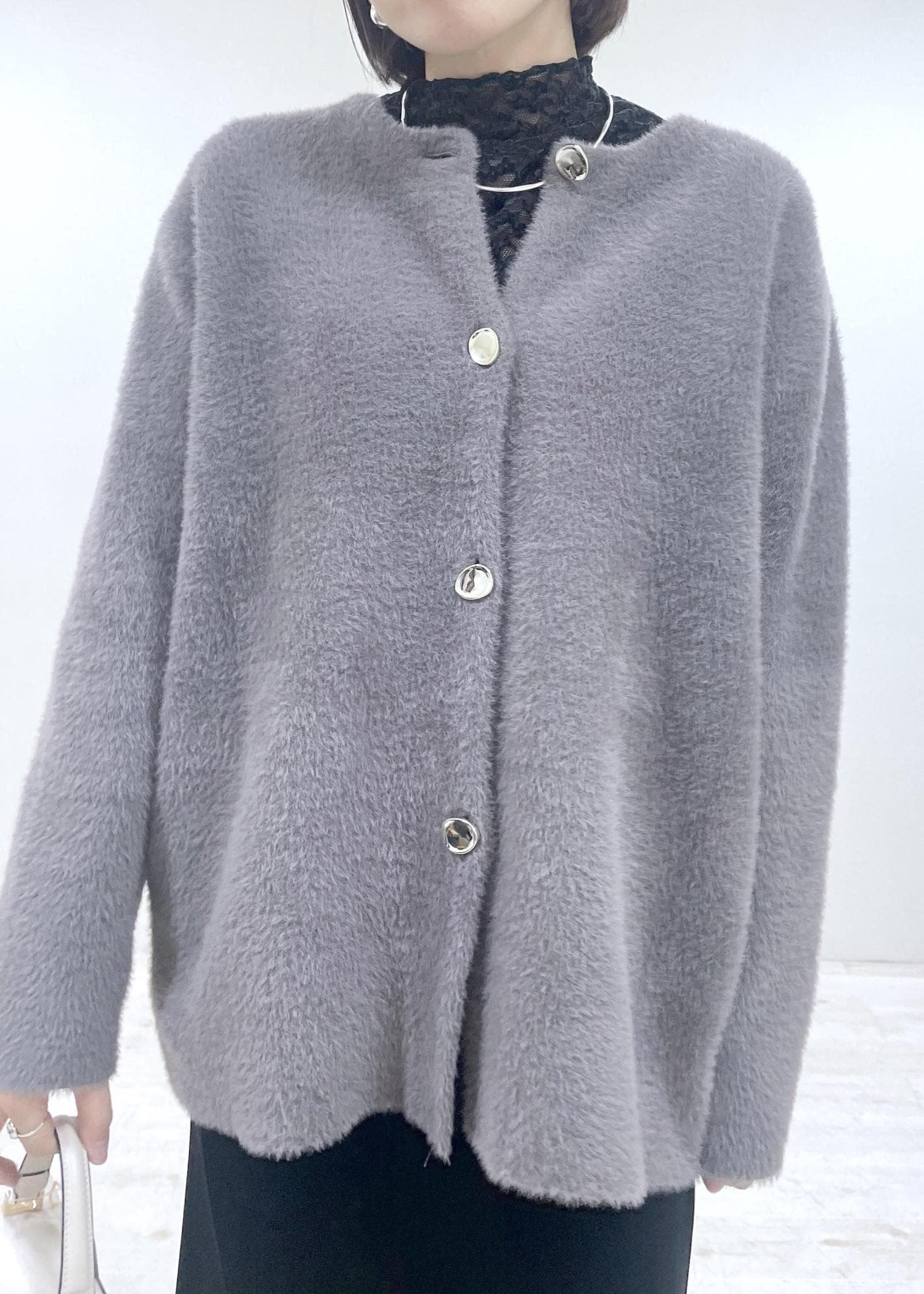 VIS接結メタルボタンミニフェザーニットコートブラウン / F¥9,999レビュー柔らかく、肌触りもいい生地感は、着ていてほっこりします。