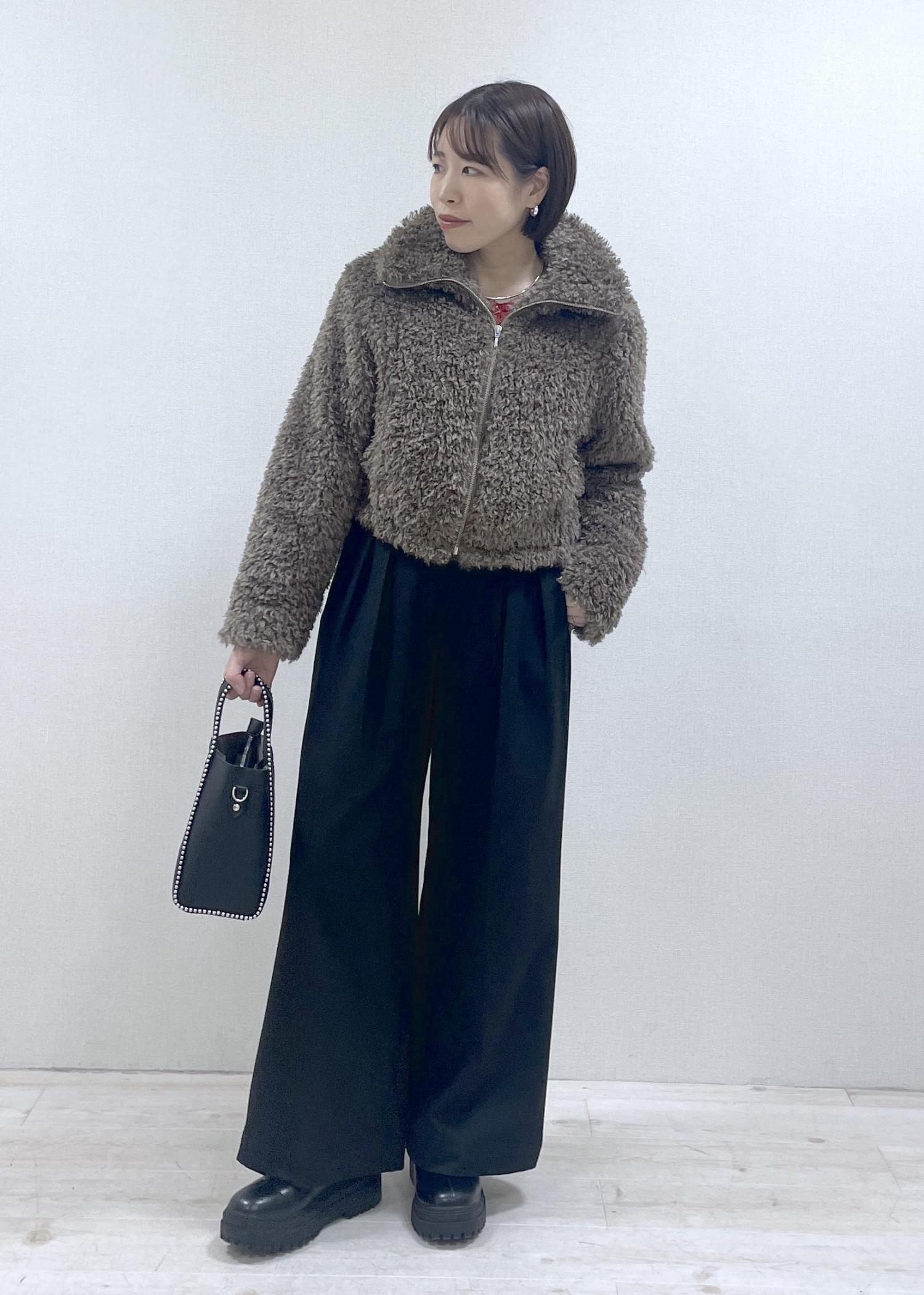 ボリューム感はありますが、腰にかかるくらいのショート丈なのですっきりした印象でお召しいただけます。