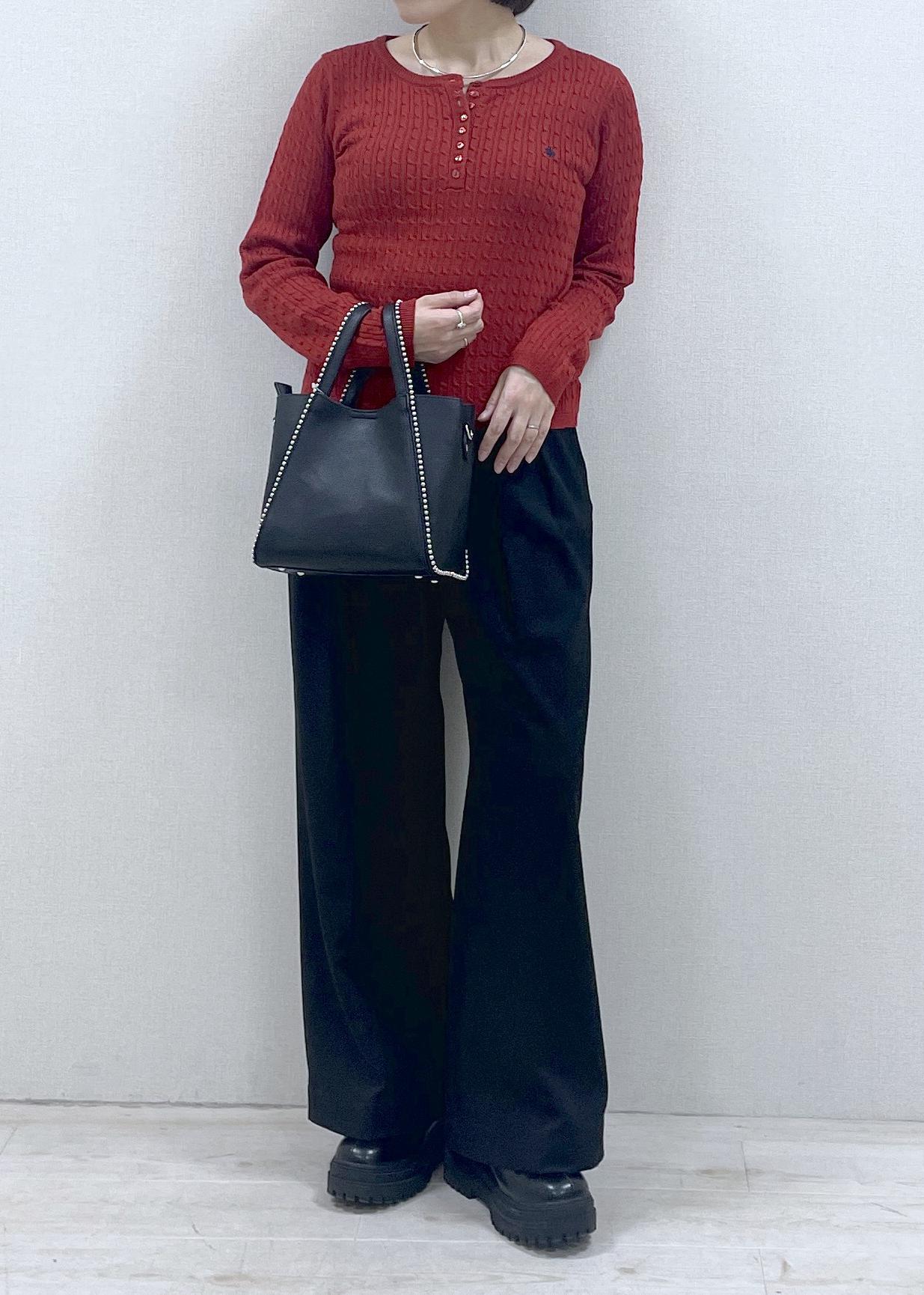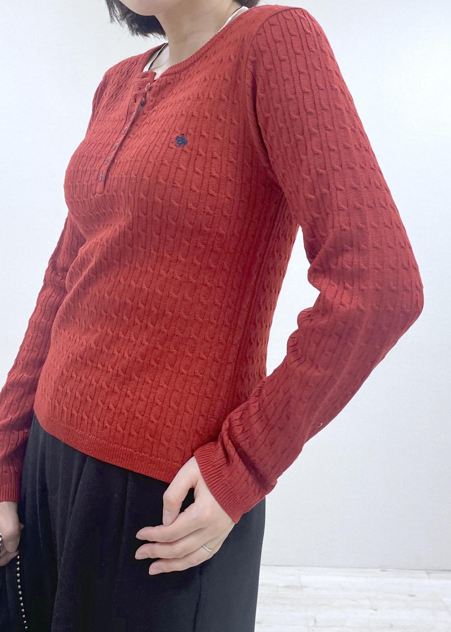 VIS【POLO BCS】VIS別注ヘンリーネックミニケーブルニットトップスレッド系 / F¥6,600レビューほどよくフィット感がありますが、ぴちっとはせず着心地いいです。