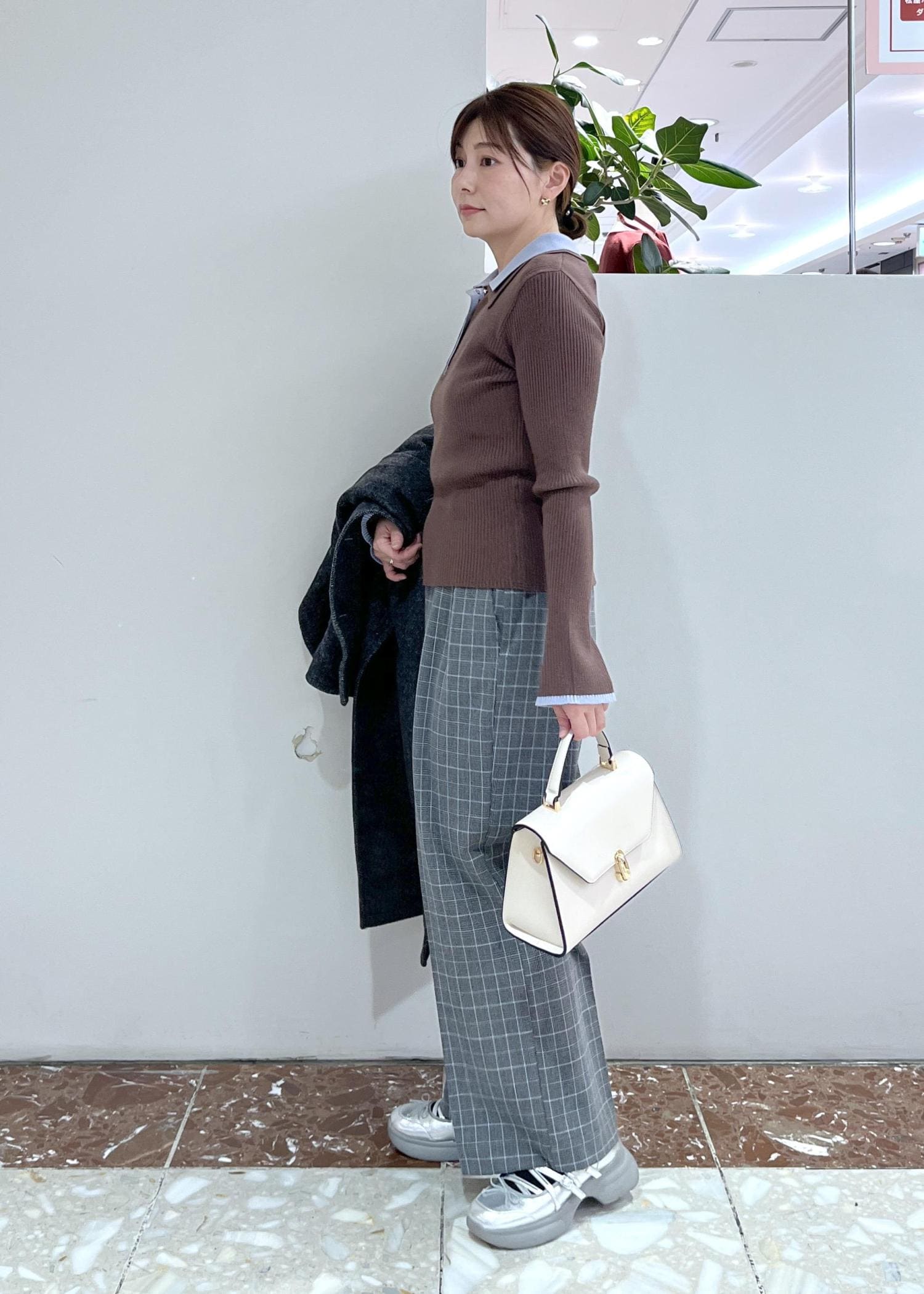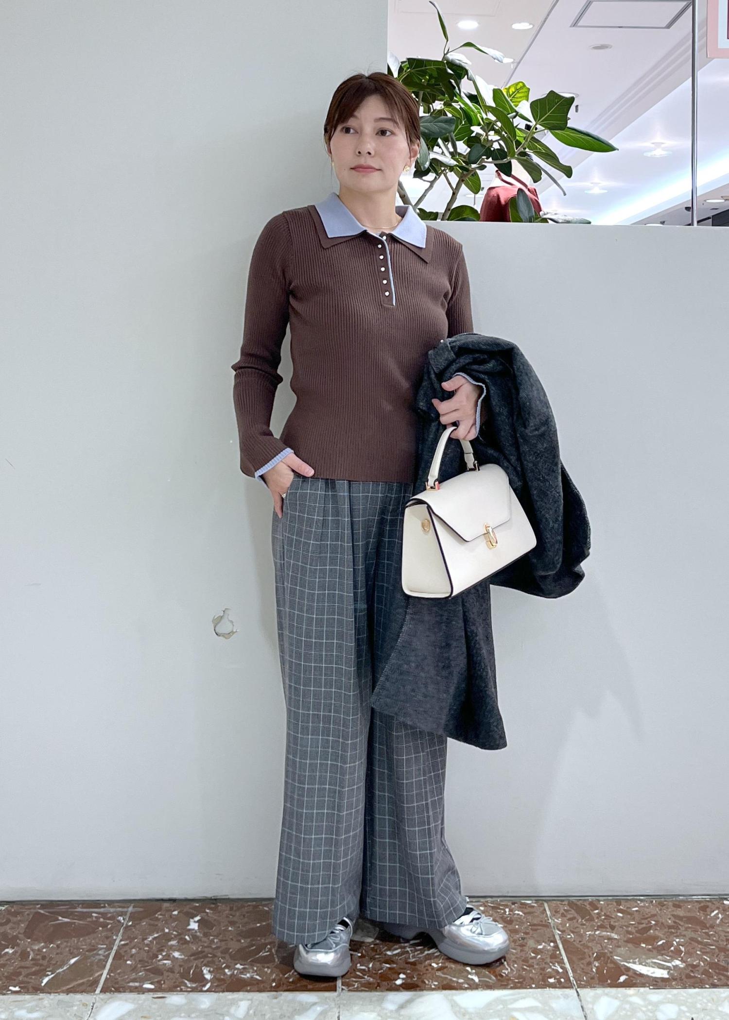 予約VISダブルカラーポロニットトップスブラウン / F¥5,929レビュー2枚襟の襟がカラー違いになっていてポイントになります。柔らかい伸び感のあるニットで肌に触れてもチクチク感なく着られます。袖口もカラー違いになっていて手の甲にかかるくらいの丈でした。