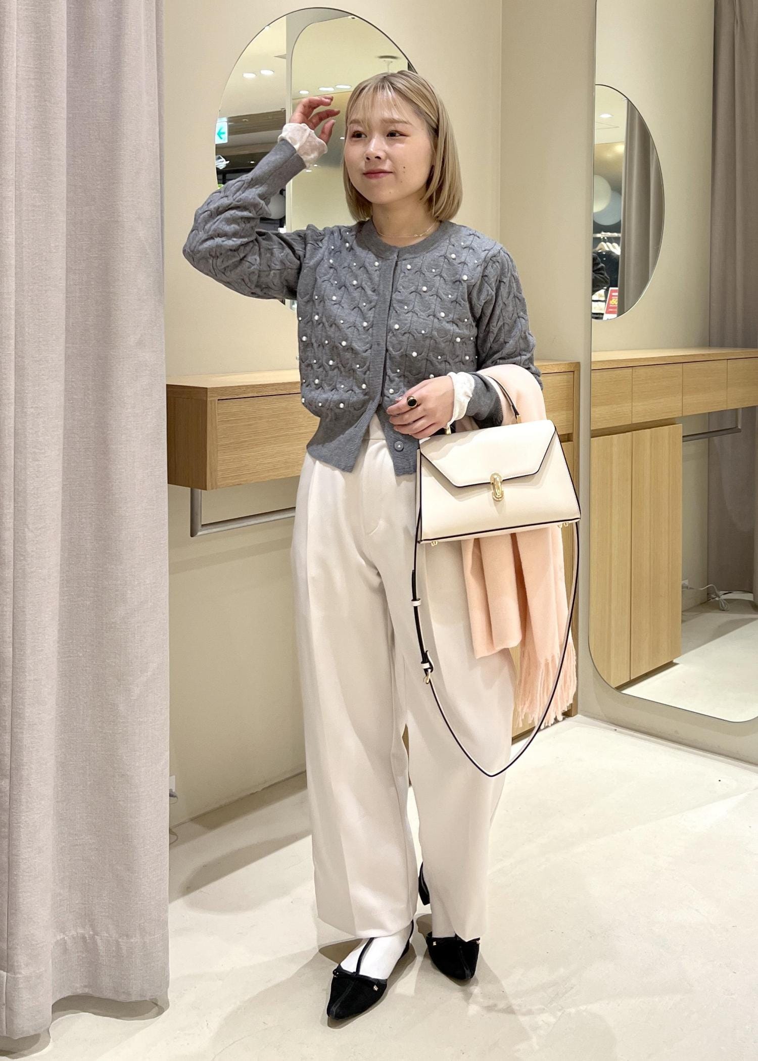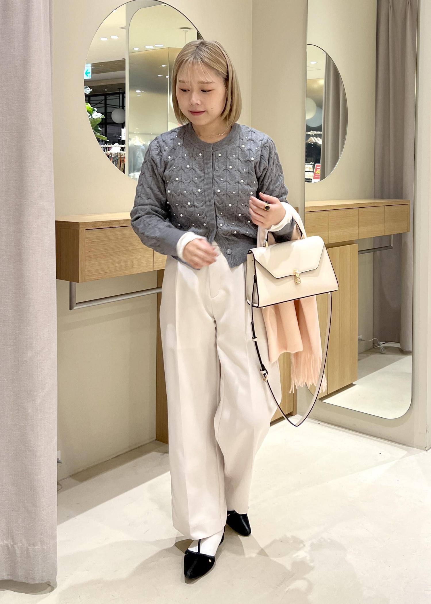 大人気の【美easy】から新色オフホワイトのパンツが出たので、冬らしい、落ち着いた雰囲気でまとめてみました◎