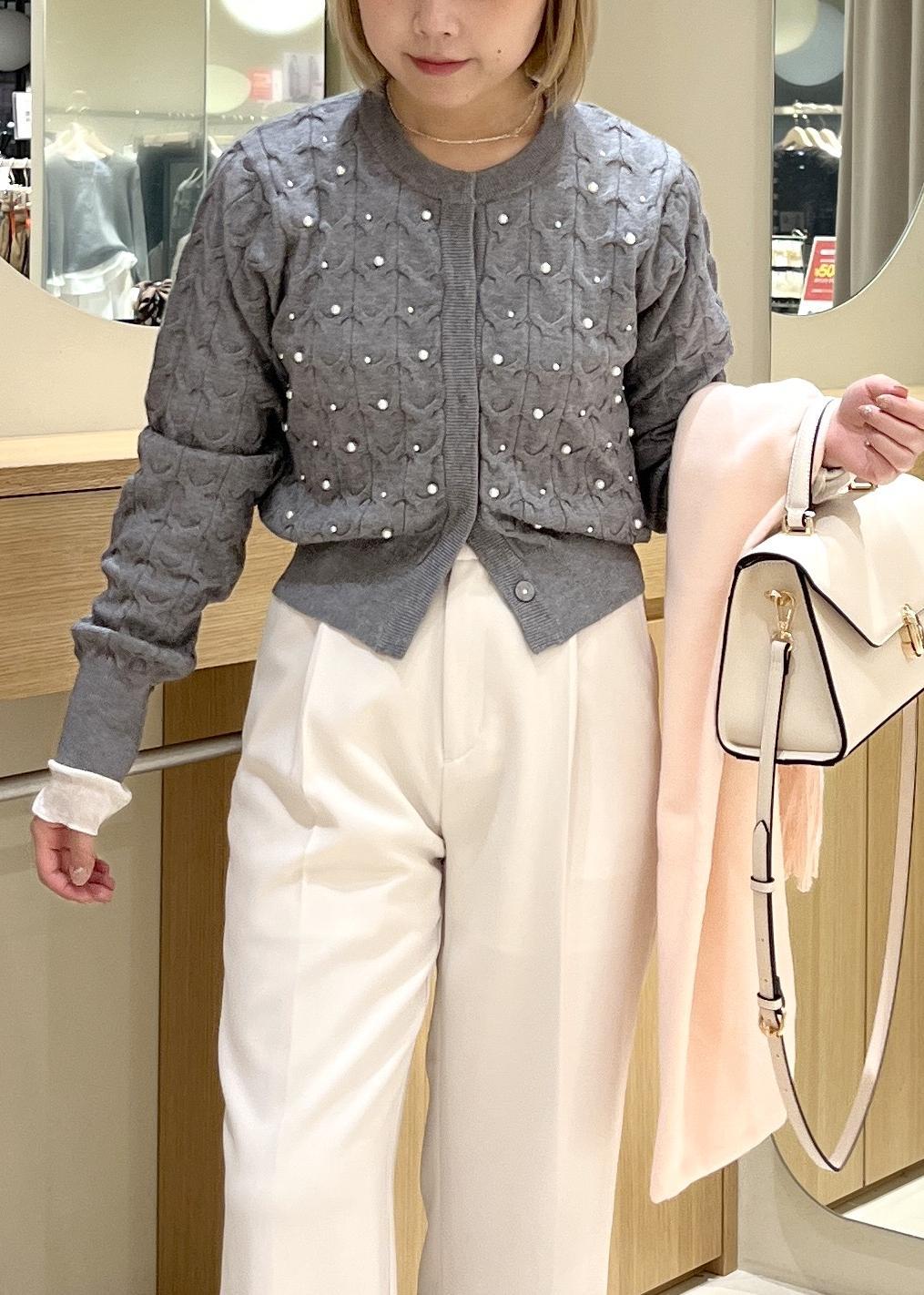 VISパールケーブルカーディガンチャコール / F¥6,589レビューモチモチの生地で、大小のパールが輝く