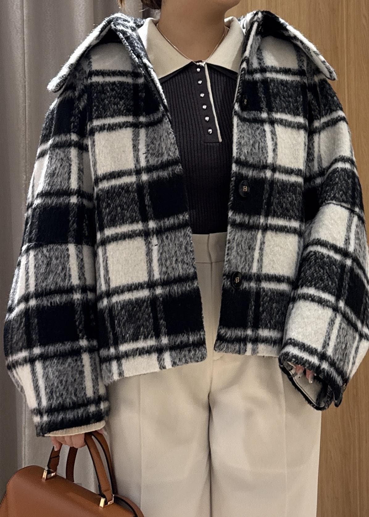 予約VIS【アウター総選挙1位】ビッグカラーモモンガシャギーショートコートブラック系 / M¥10,989レビュー袖の長さ、丈感のピッタリサイズはSサイズですが、オーバーサイズで可愛く合わせたく今回はMサイズ着用してます!