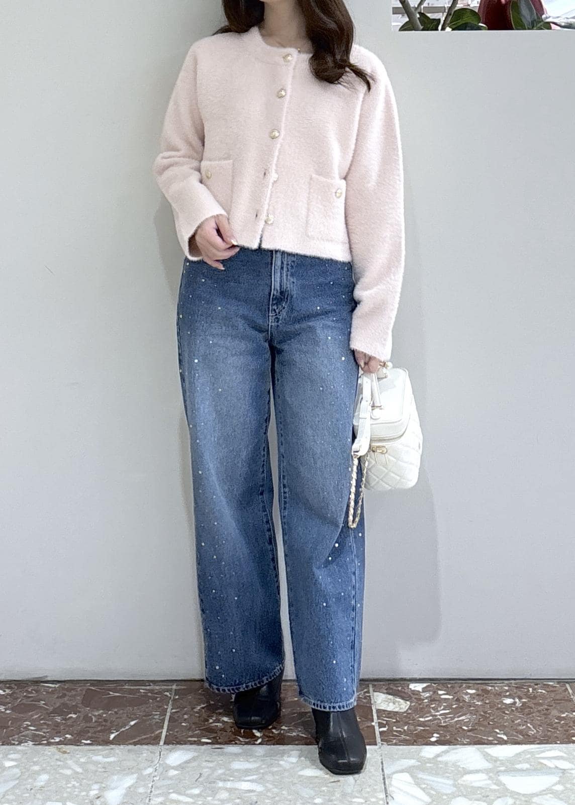 VISビジューデニムパンツブルー / S¥7,909レビュー158cmSサイズ着用。骨格ウェーブでウエストは少し緩めで、丈も5cmほどのヒールを履いてちょうどいいくらいでした◎