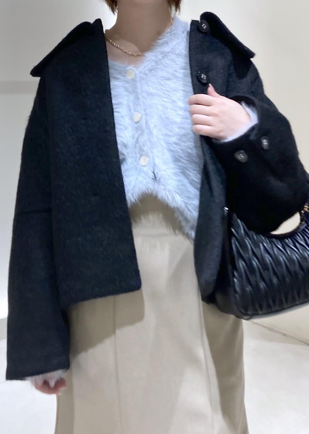 予約VIS【アウター総選挙1位】ビッグカラーモモンガシャギーショートコートブラック / S¥10,989レビュー155cmでM着用です。