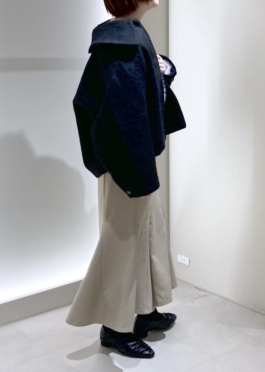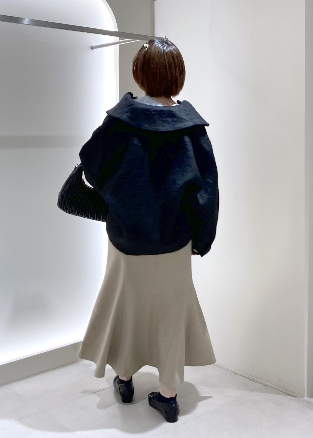 襟が大きいので首元を抜いて着ると抜け感がでて、低身長さんもバランス良く着こなすことができます! -