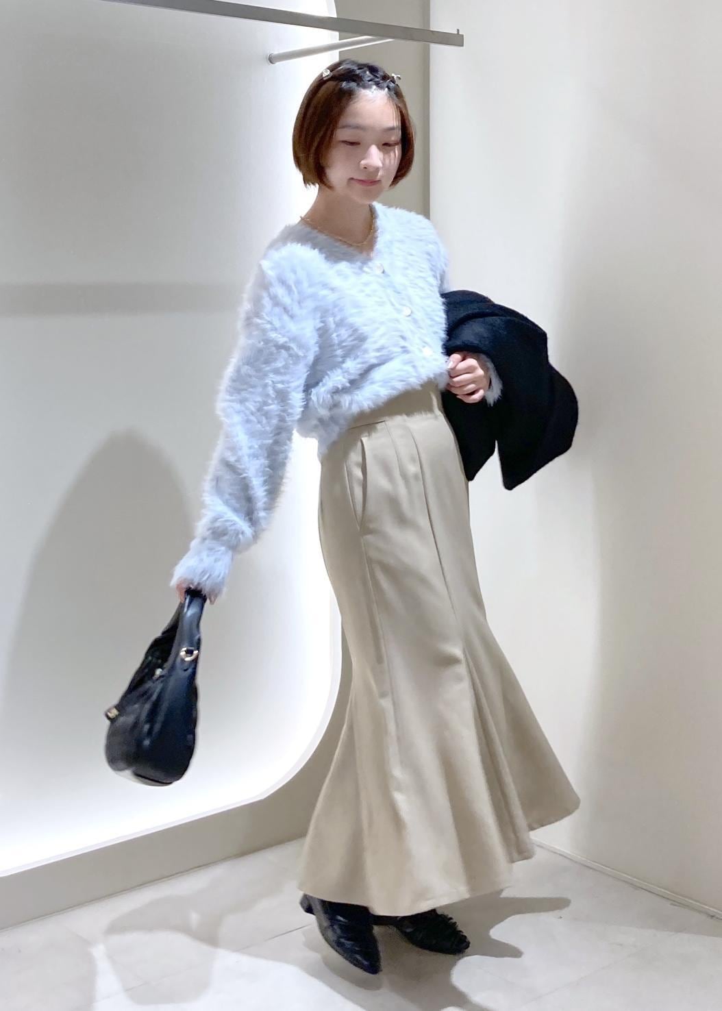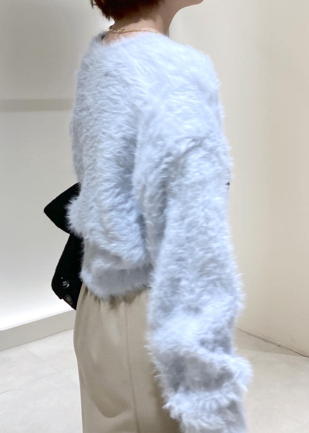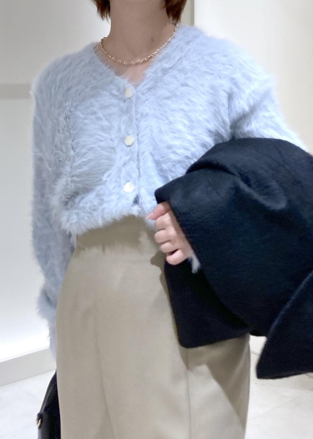 VISラビットファーVネックカーディガン/イージーケア・WEB限定カラーサックス / F¥5,929レビュー155cmで腰上くらいの丈感です。
