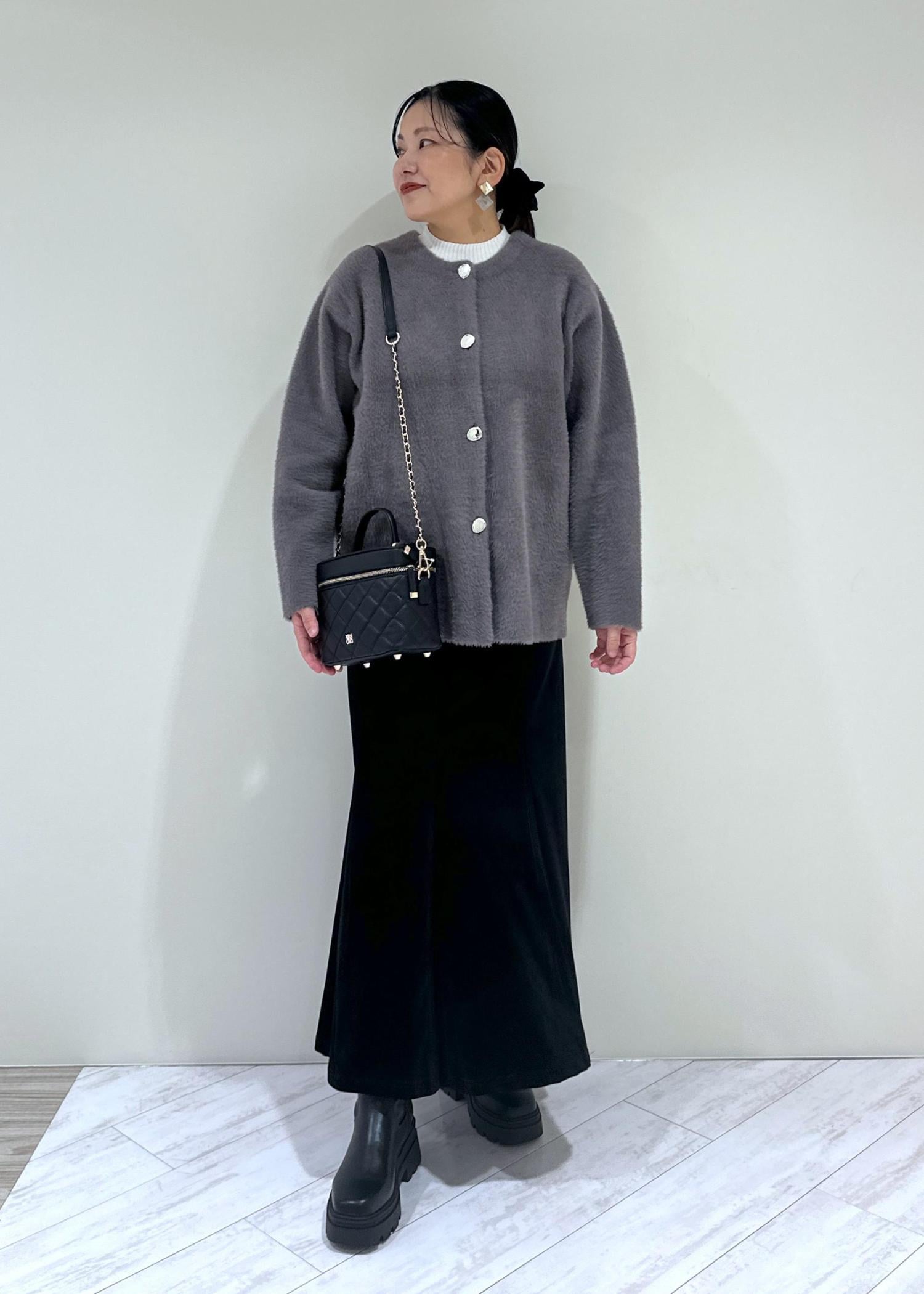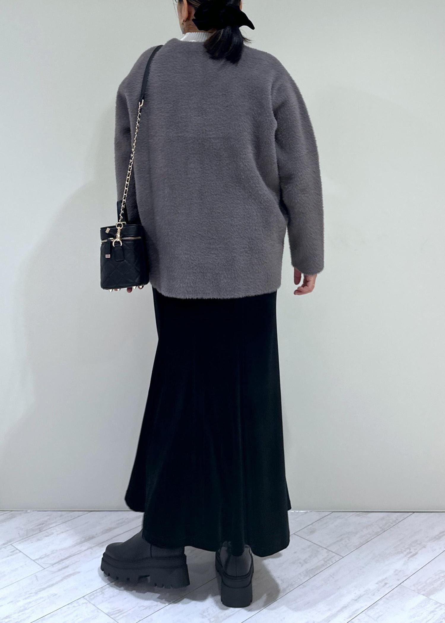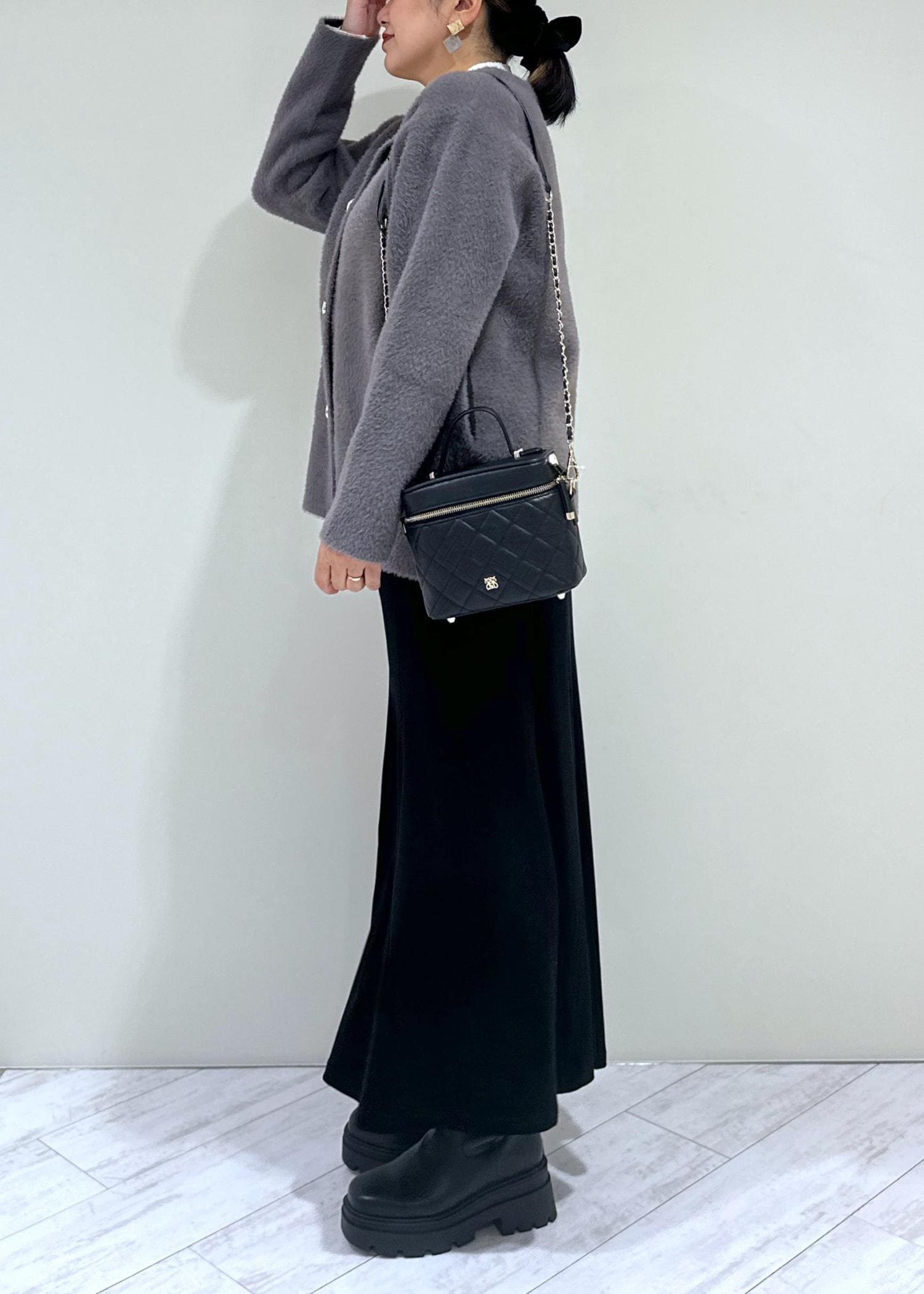VISファーハンドルキルティング&ツイードバニティバッグ/2WAYブラック / F¥7,909レビュー大人可愛いバニティバッグ、見た目以上に容量あります!