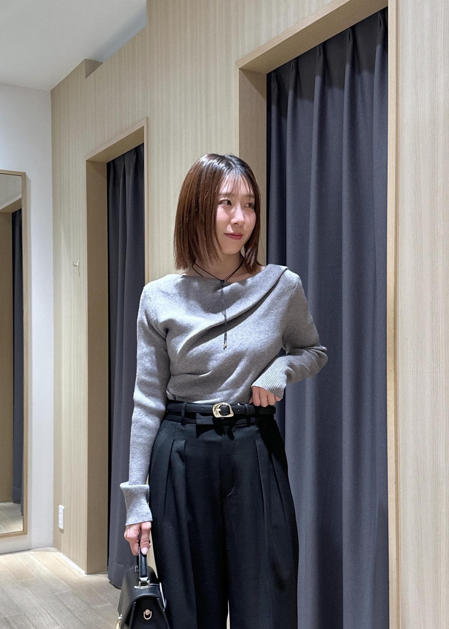 デコルテがきれいに見えるデザインですが、開きはそこまでないので安心感もあり、ON/OFF使いやすいです! -